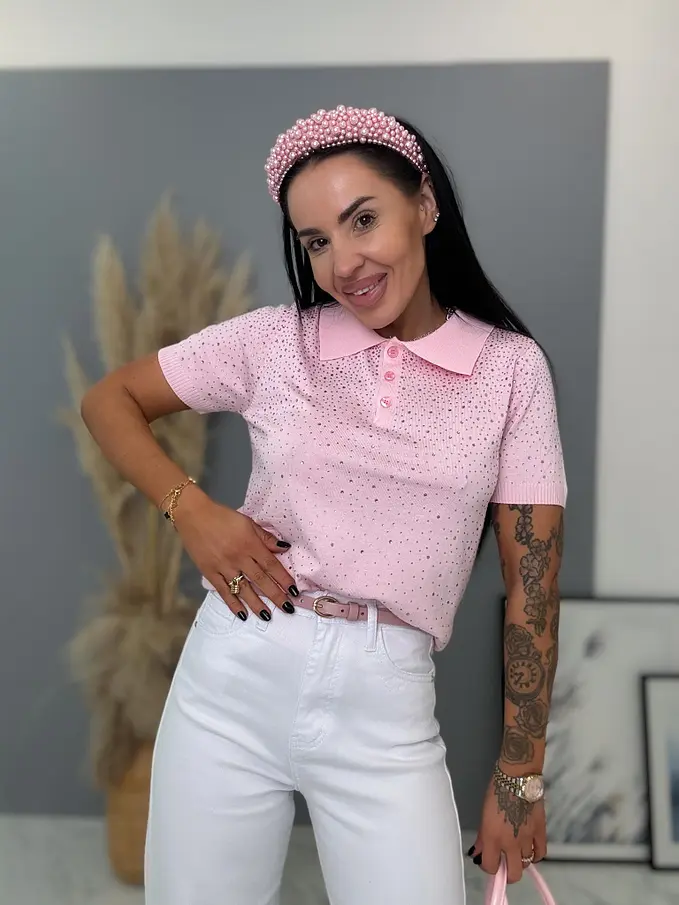 Pulóver s gombíkovou légou zdobený kamienkami LUCIE