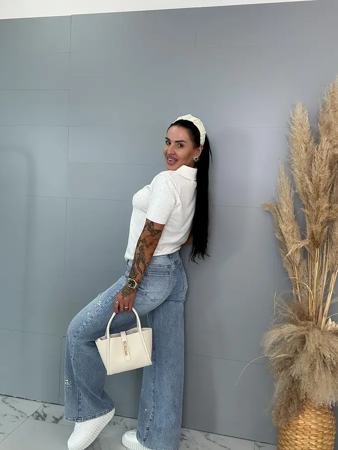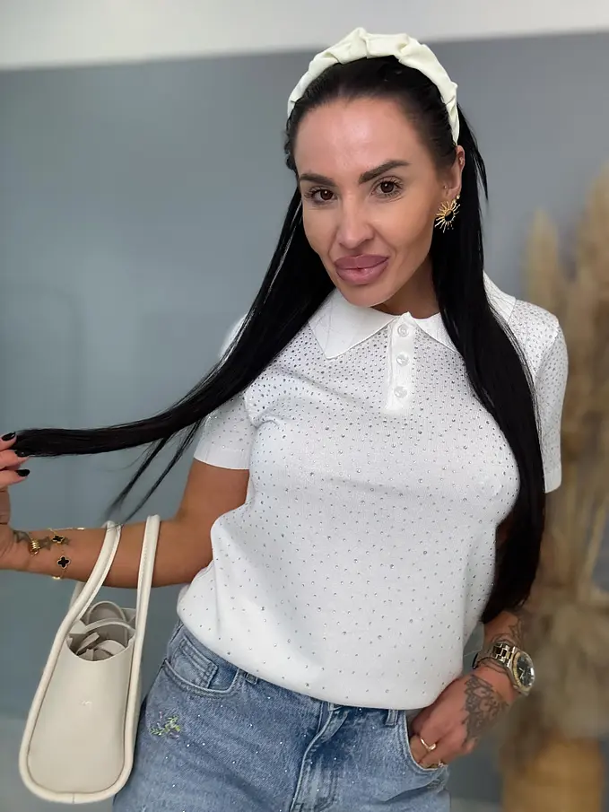 Pulóver s gombíkovou légou zdobený kamienkami LUCIE