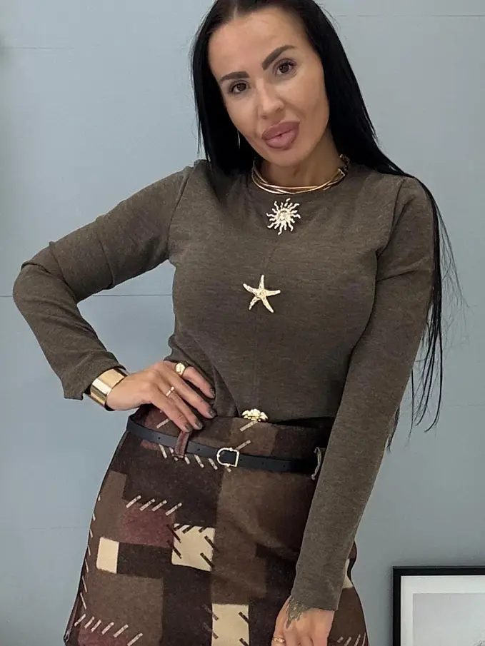 Pulóver so zlatou ozdobou KARMELA