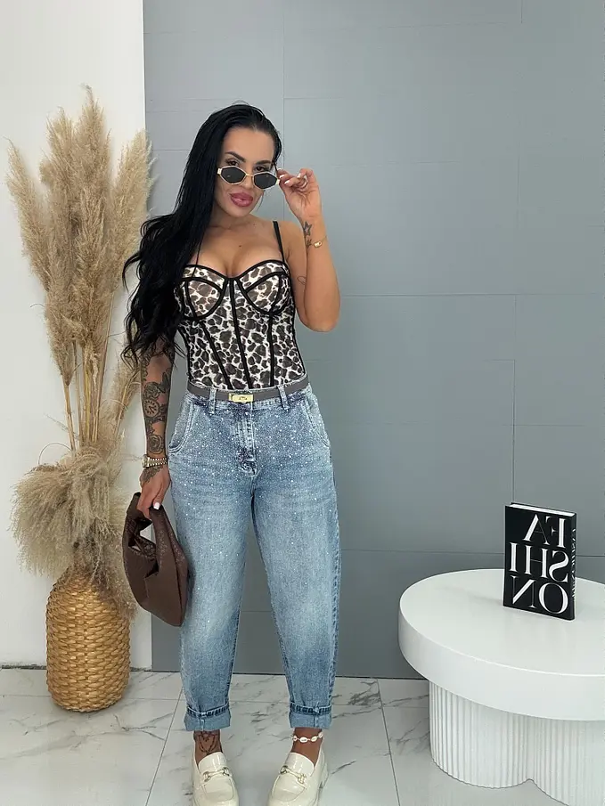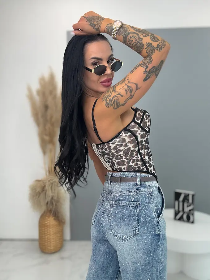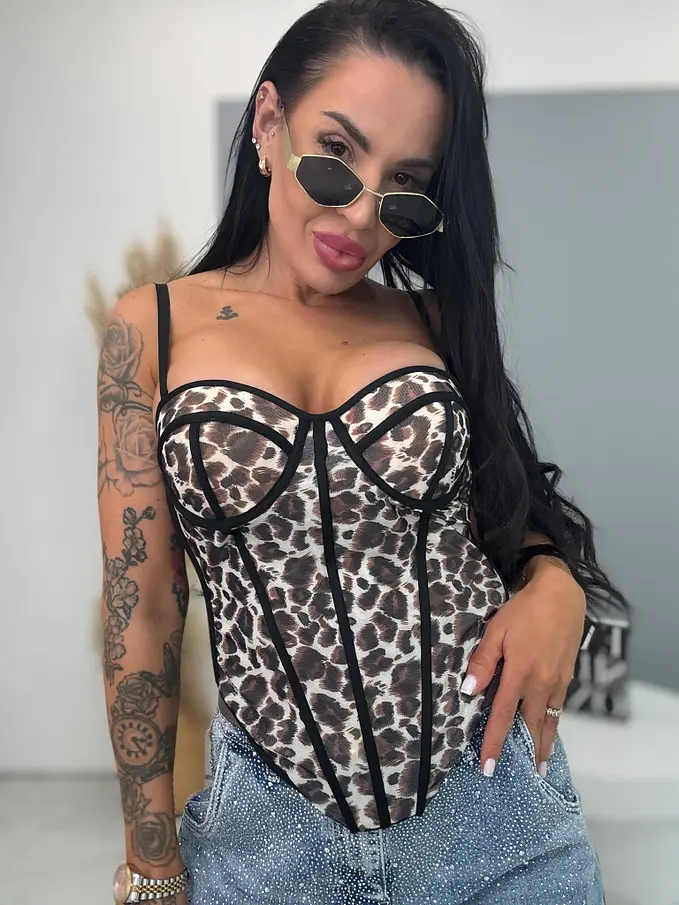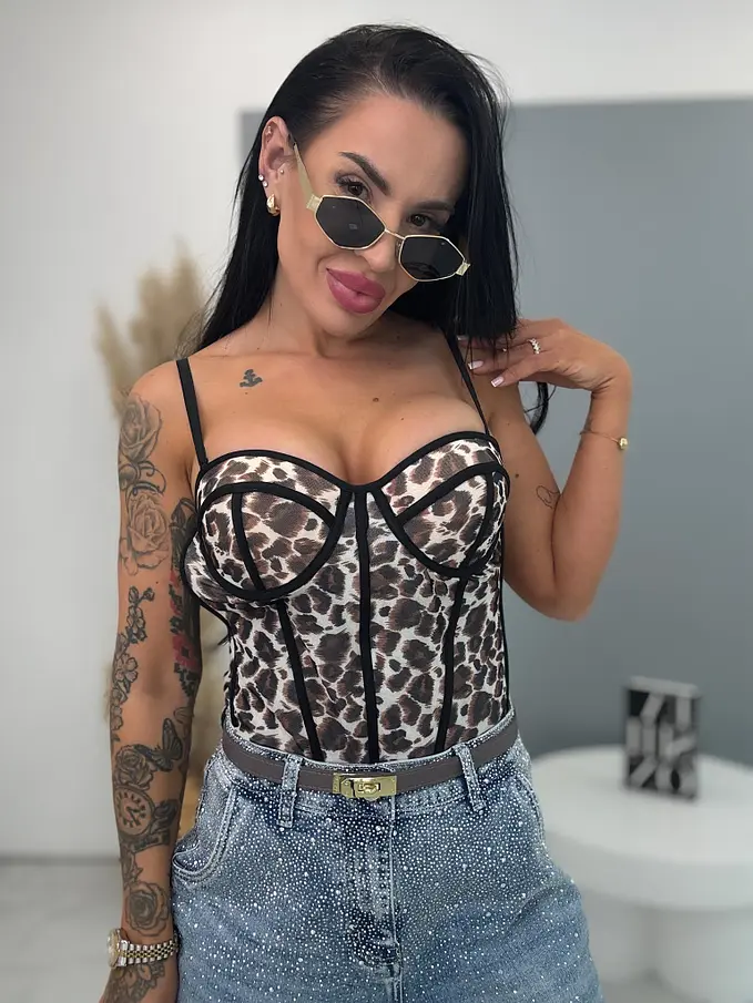 Push-up korzetový top s leopardím vzorom