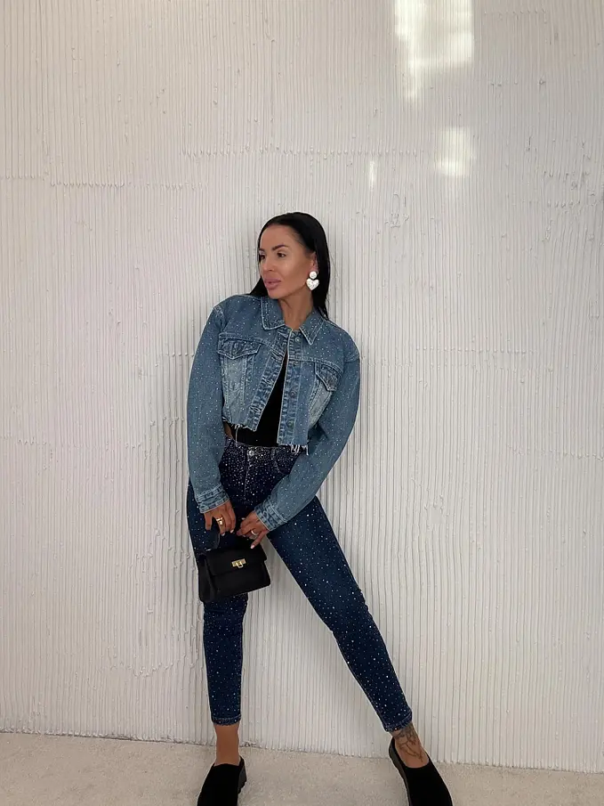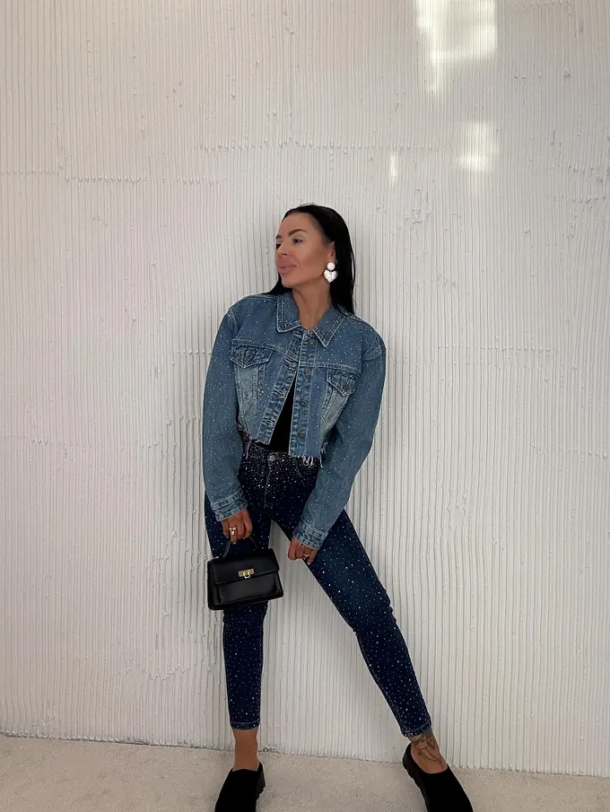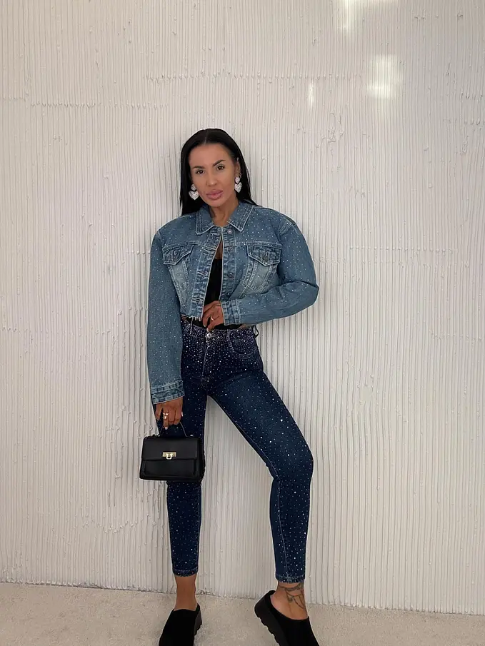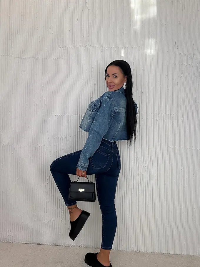 Premium kvalita. Nohavice majú vysoký pás. Materiál je príjemný, elastický. S ozdobnými kamienkami. Gombík je strieborný.