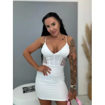 Ramienkové minišaty zdobené čipkou s vypchávkami RENEIA