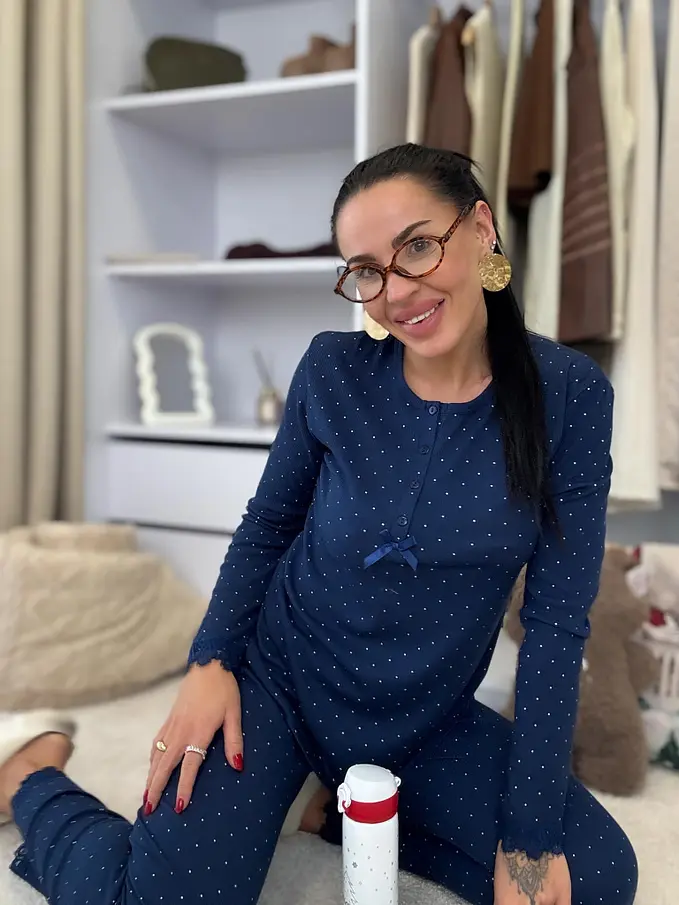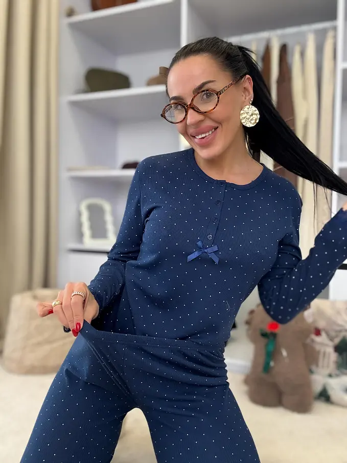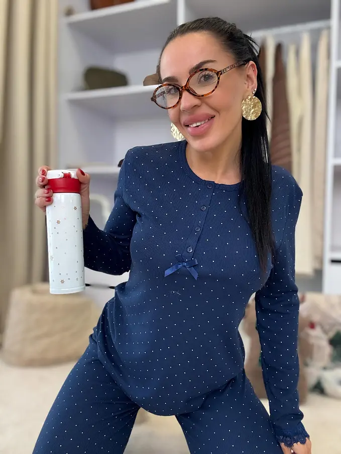 Rebrované pyžamo s čipkovým lemom AVILMA