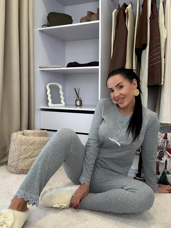 Rebrované pyžamo s čipkovým lemom AVILMA