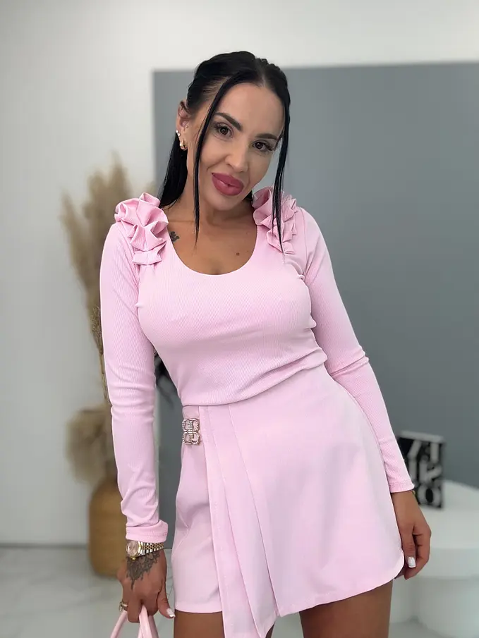 Elastický rebrovaný materiál sa krásne prispôsobí postave a volán na ramene dodáva topu jemný, ženský a romantický vzhľad.