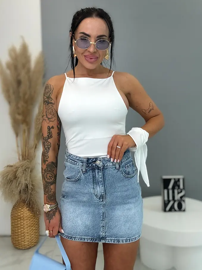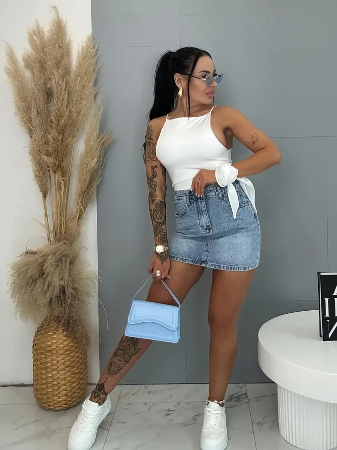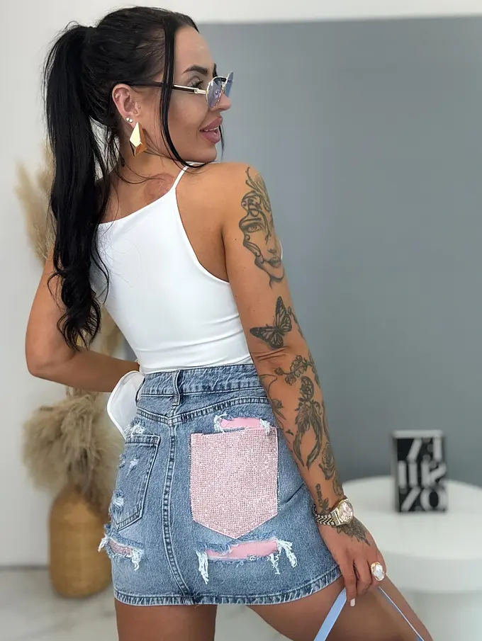 Rifľová sukňa so zadným trblietavým vreckom FLEXI