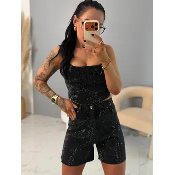 Tieto moderné a štýlové rifľové šortky spájajú čistý dizajn s výraznými detailmi. Starostlivo osadené, odolné kamienky dodávajú jedinečný, trblietavý vzhľad, zatiaľ čo klasický denim materiál zaručuje pohodlné nosenie počas celého dňa.