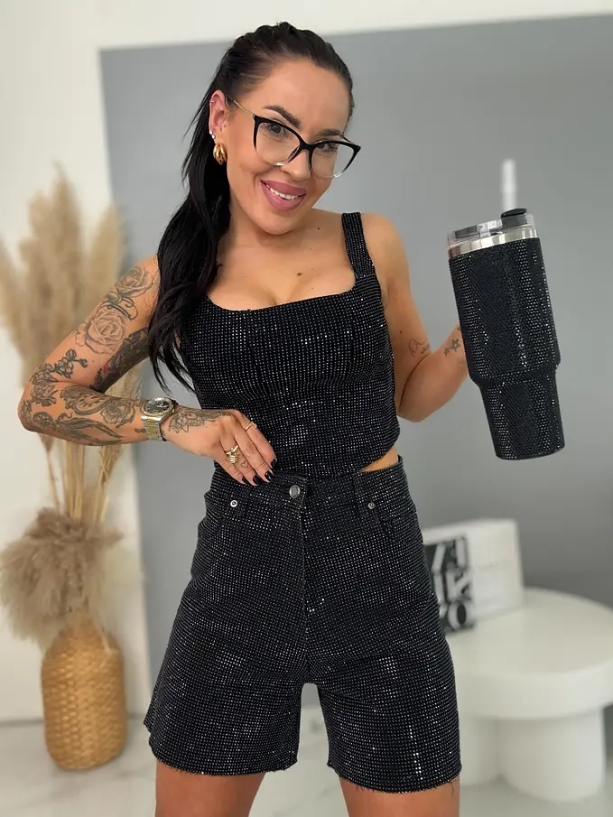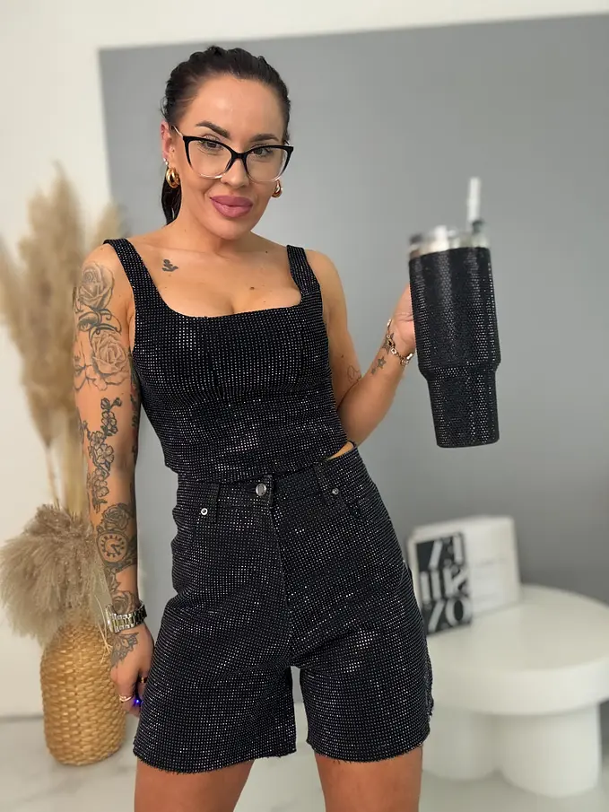 Rifľové šortky s kamienkami DIAMOND BLACK