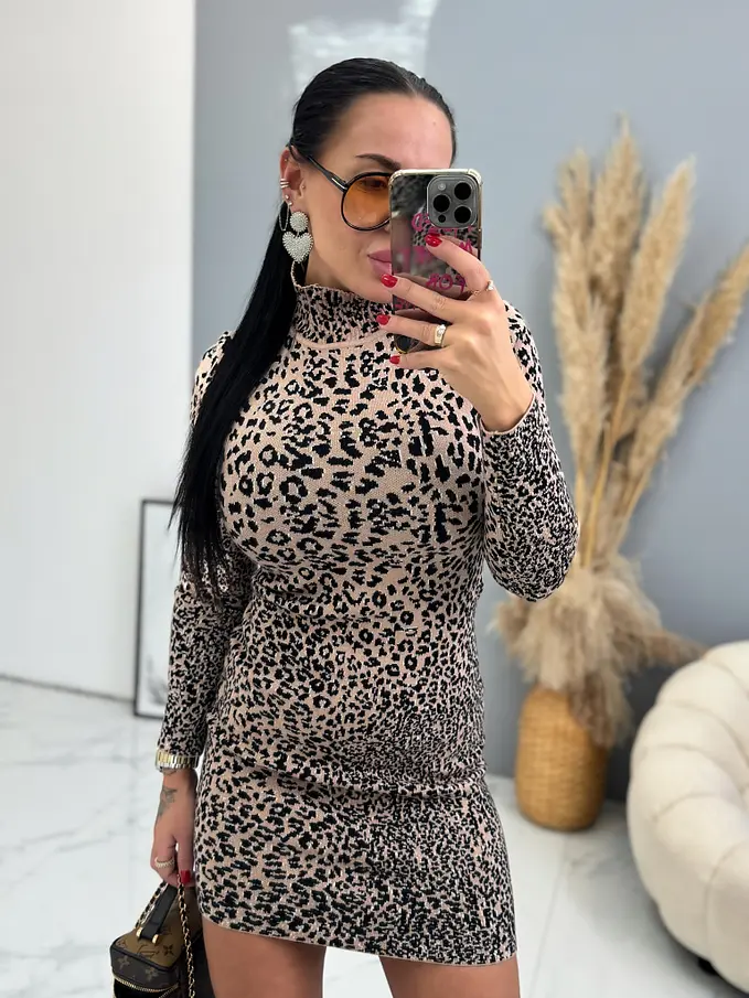 Modelka čiernovláska meria 164 cm a váži 64 kg. Nosí veľkosť M/L. Miery: 99 cm - 74 cm - 93 cm.