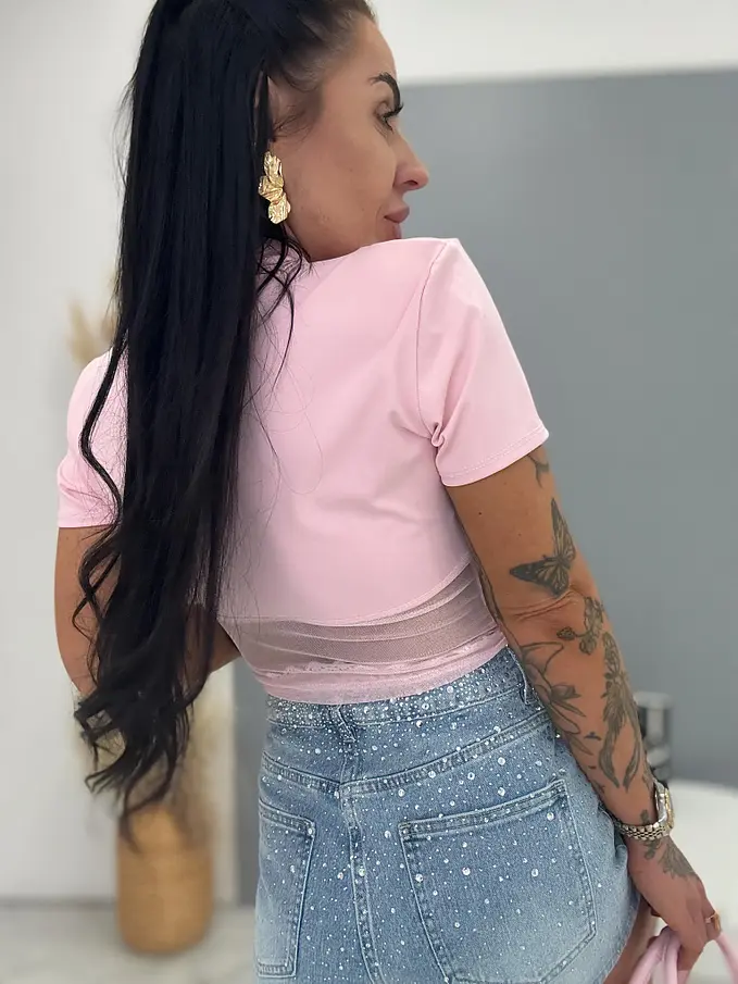 Ružový crop top so šifónovým spodkom Maya