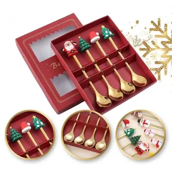 Zažite vianočnú atmosféru! Krásna sada 4 lyžíc v krabičke s vrchnákom je perfektným tipom na darček.