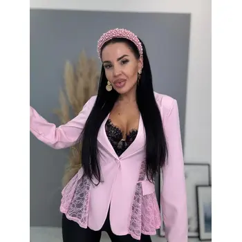 Dámske sako z príjemného materiálu. Materiál nie je elastický. Sako sa zapína na gombík. Má vypchávky v oblasti ramien. Priehľadnými čipkovými vsadkami. Sako je podšité.