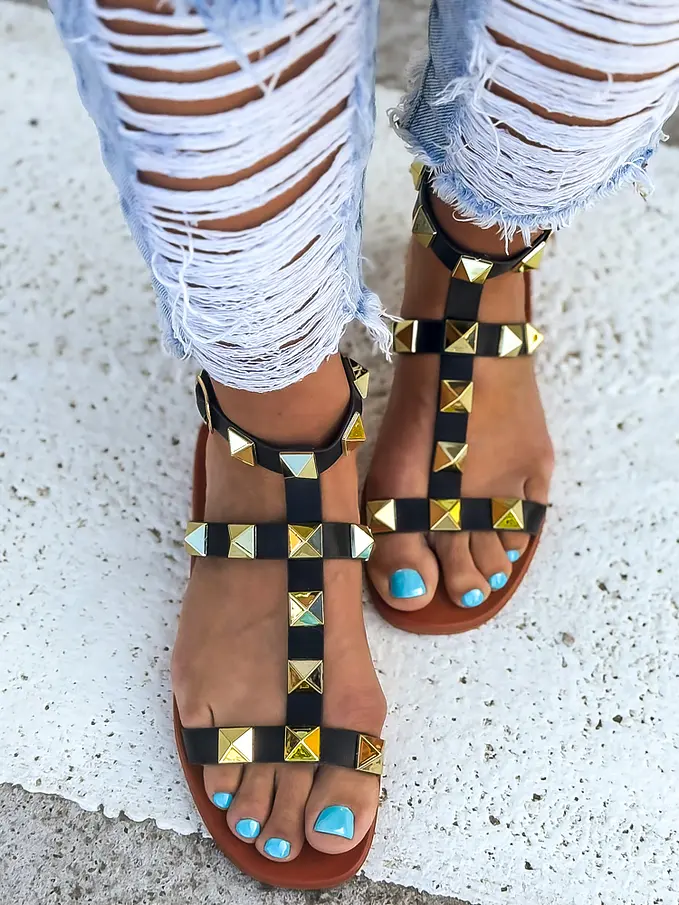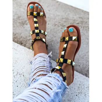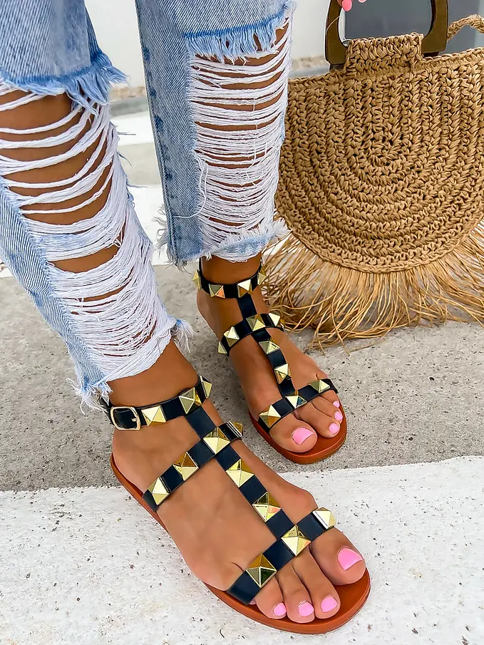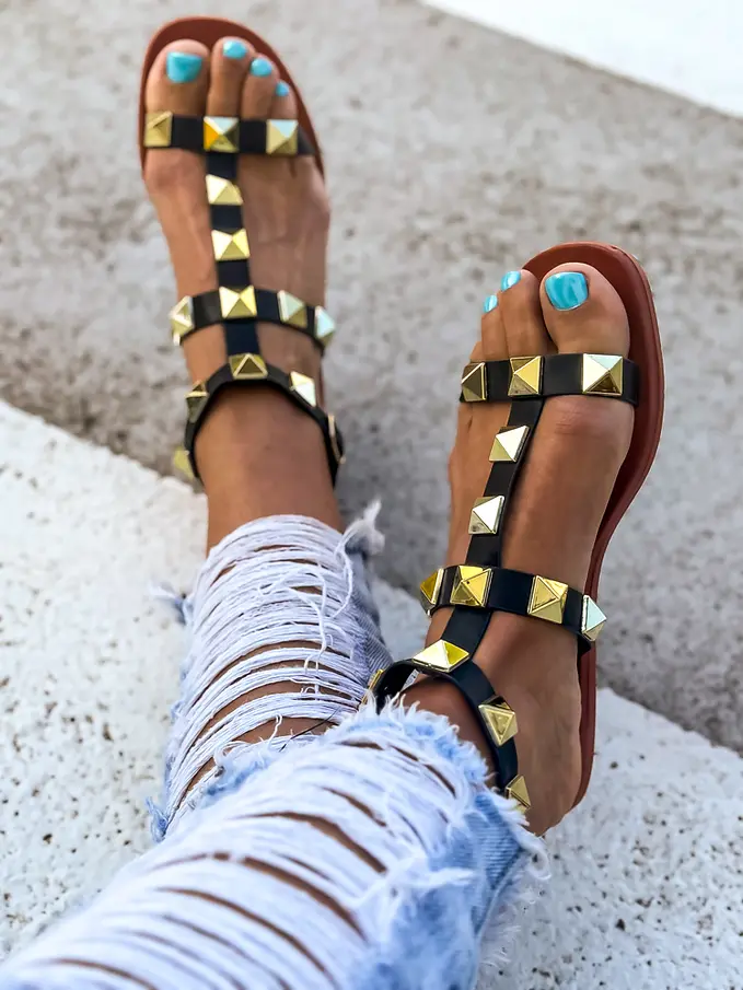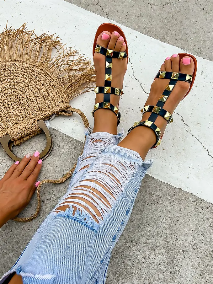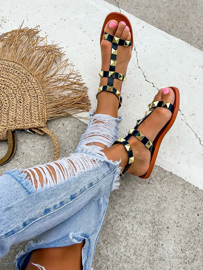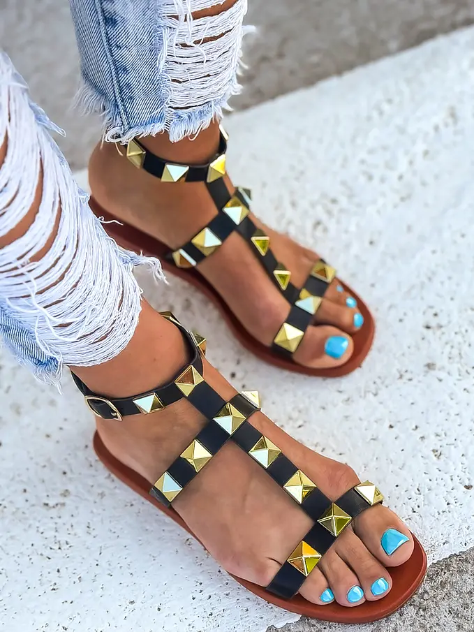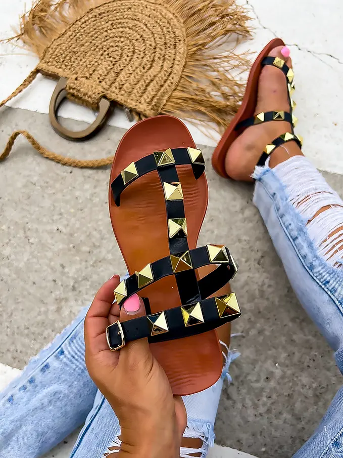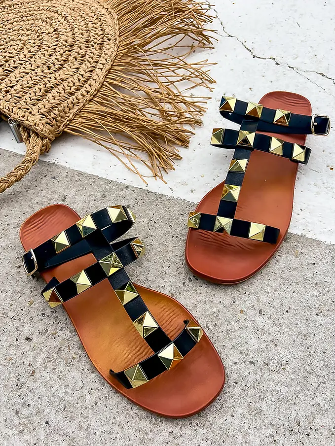 Sandále zdobené zlatými nitmi JAYNA-
