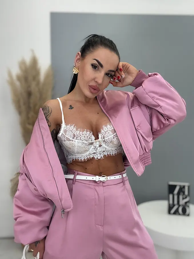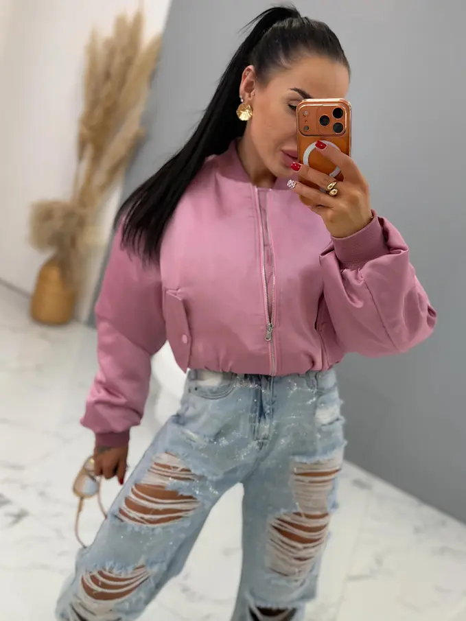 Kabát vďaka príjemnému materiálu je skvelou voľbou na prechodné obdobie aj chladnejšie dni. Má zapínanie na strieborný zips a praktické bočné vrecká.