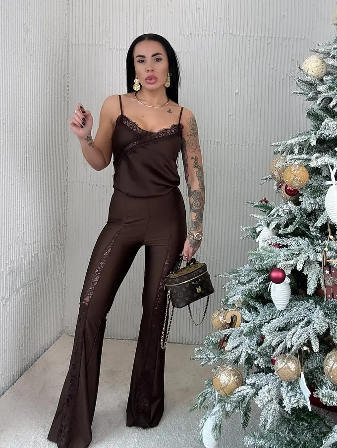 Elegantný saténový top s jemnou čipkou a nastaviteľnými tenkými ramienkami.