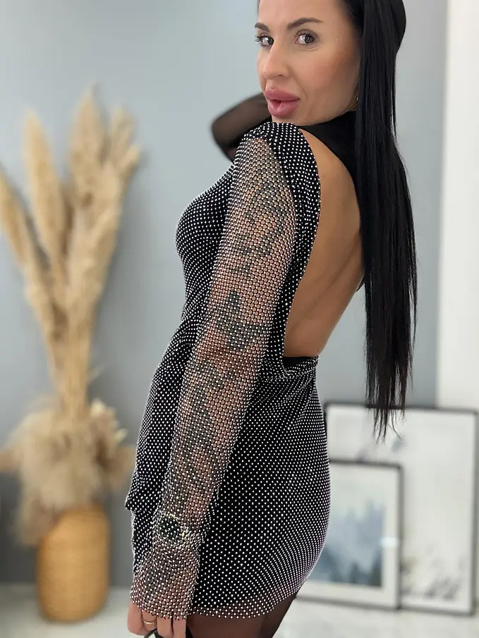 Šaty s odhaleným chrbtom zdobené kamienkami PHILIPPA