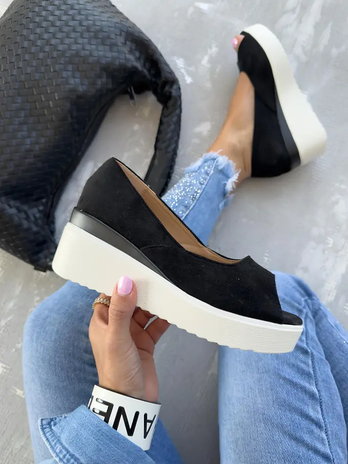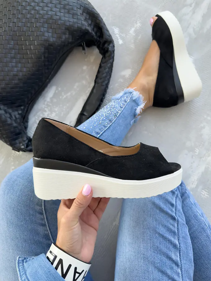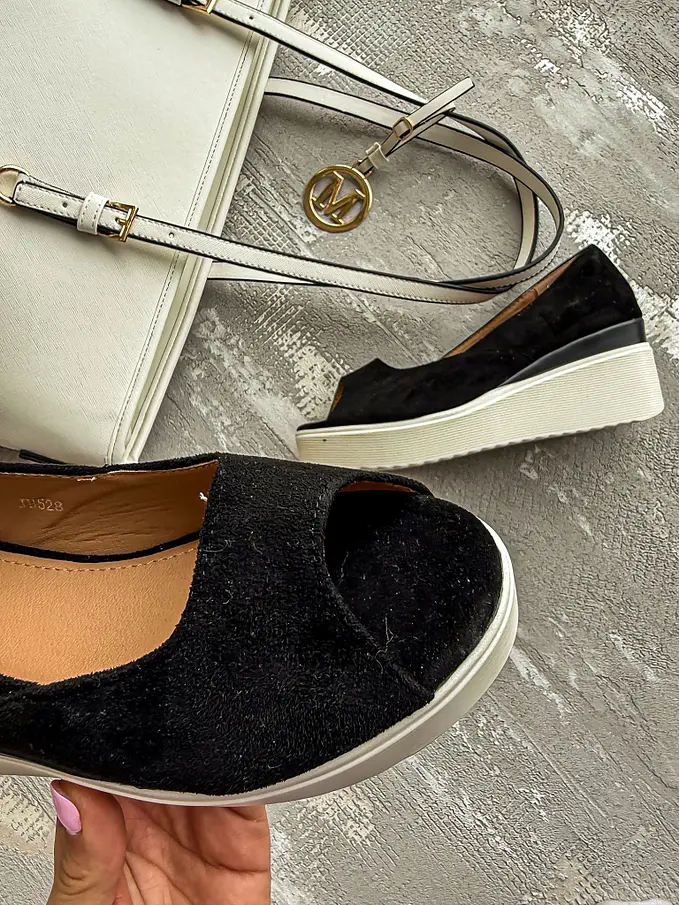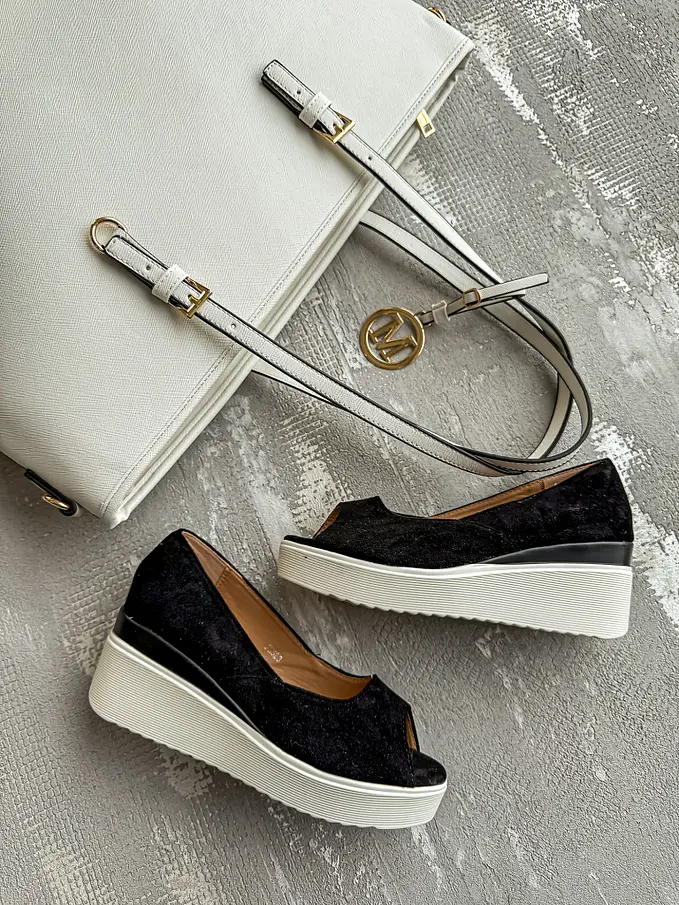 Veľkosti zodpovedajú klasickému európskemu číslovaniu. Modelka nosí veľkosť 38 a mala obutú i pri fotení veľkosť 38.