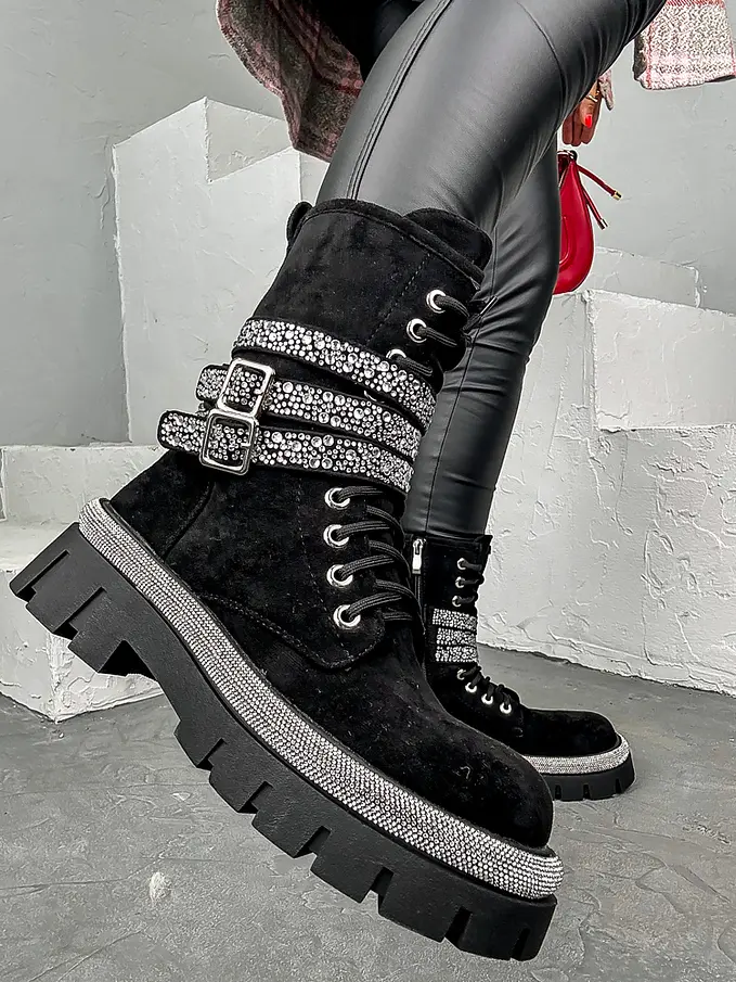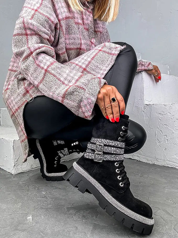 Semišové šnúrovacie členkové čižmy MADELYN-