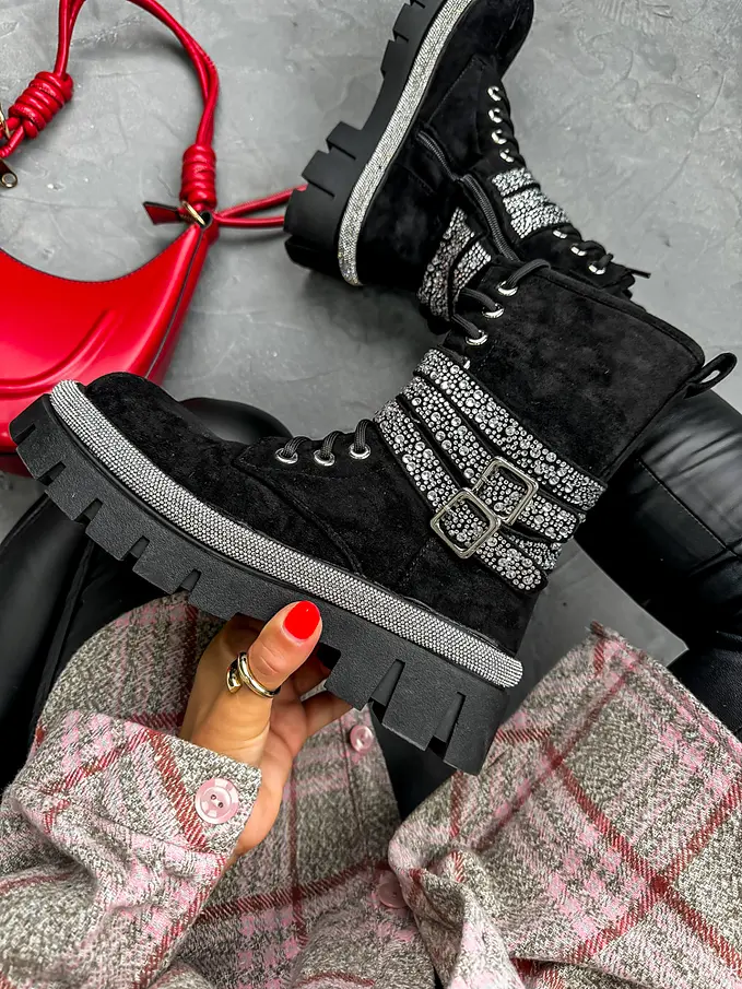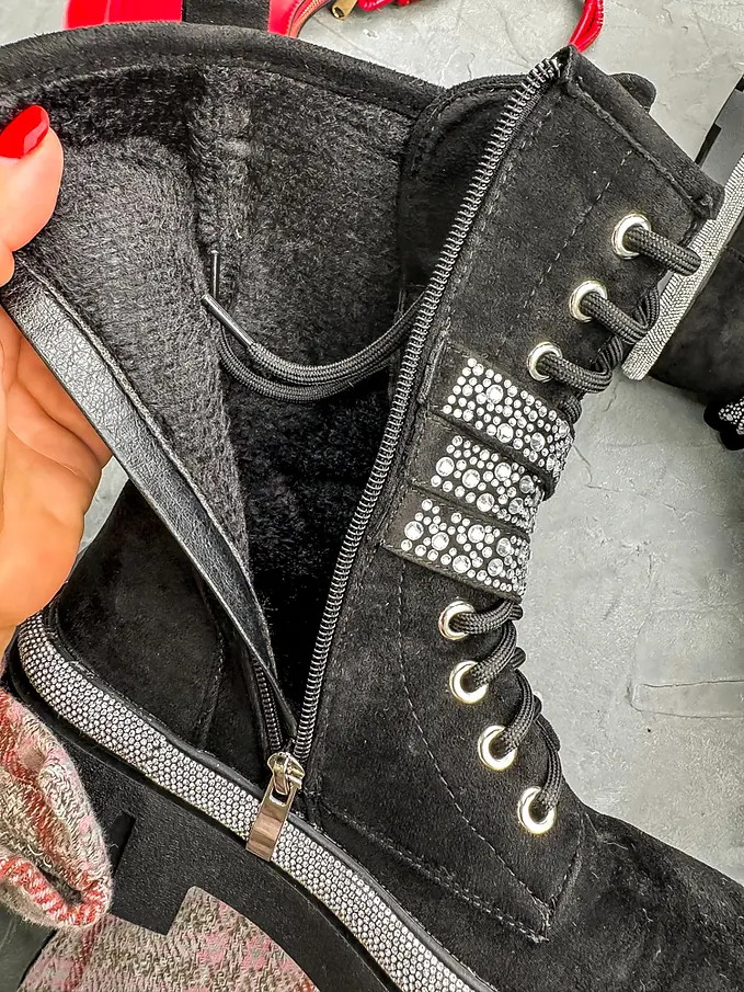 Štýlová aj v sychravom počasí? Čižmy perfektne doplnia napríklad slim džínsy a vestu z kožušinky. Doplnky majú striebornú farbu. Čižmy sú mierne zateplené.