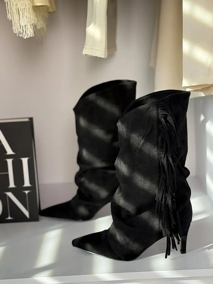 Štýlová aj v sychravom počasí? Čižmy perfektne doplnia napríklad slim džínsy a vestu z kožušinky. Doplnok má striebornú farbu. Čižmy sú mierne zateplené.