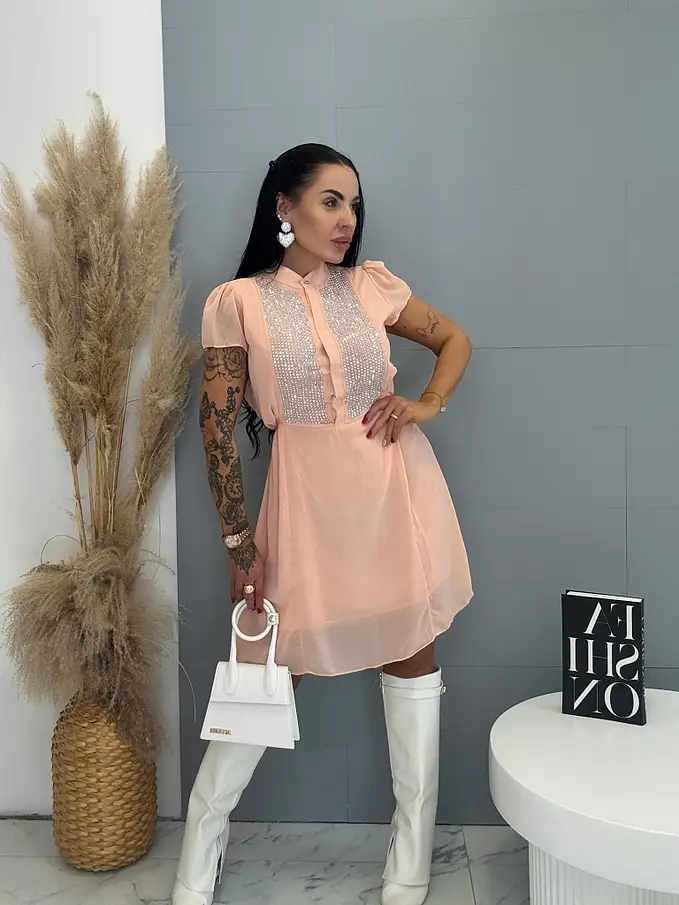 Šifónové šaty s viazaním a zdobené kamienkami MIRYA
