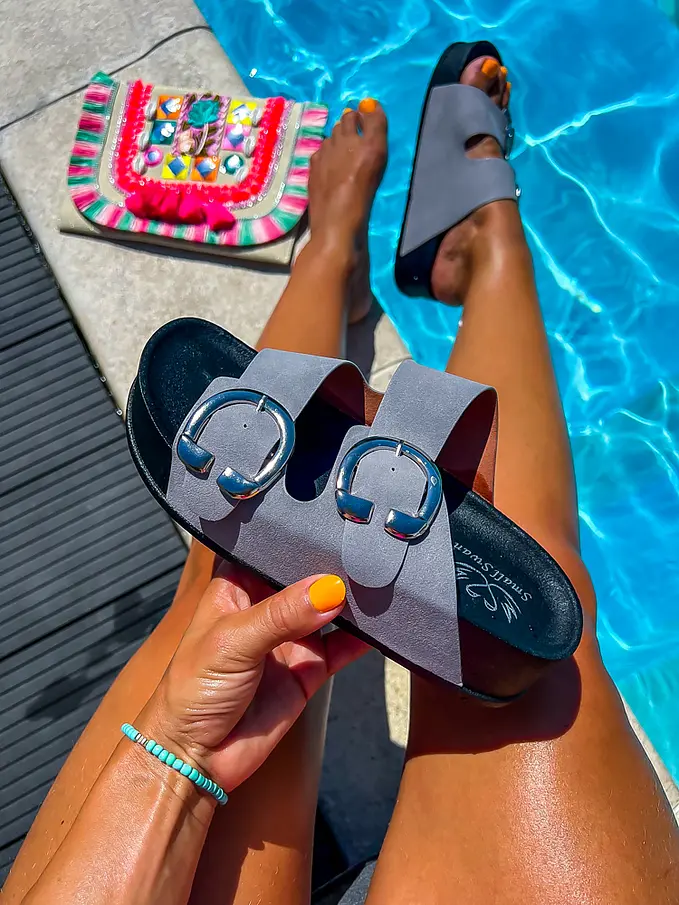 Dámske šľapky na platforme. Ultraľahké. Ozdoba má striebornú farbu.