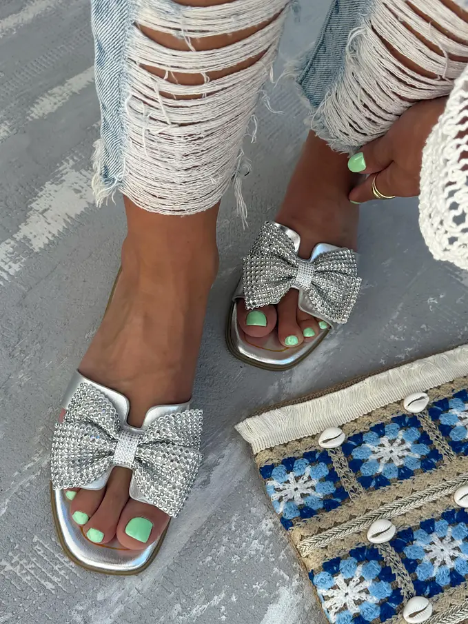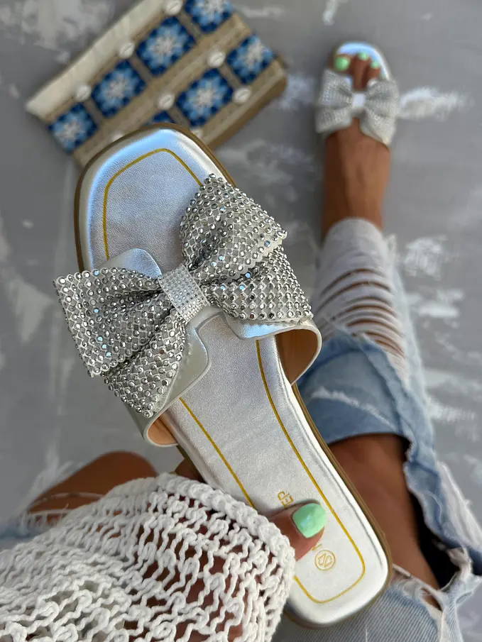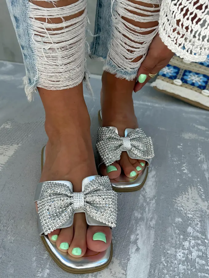 Šľapky s mašľou zdobené kamienkami HANSIKA-