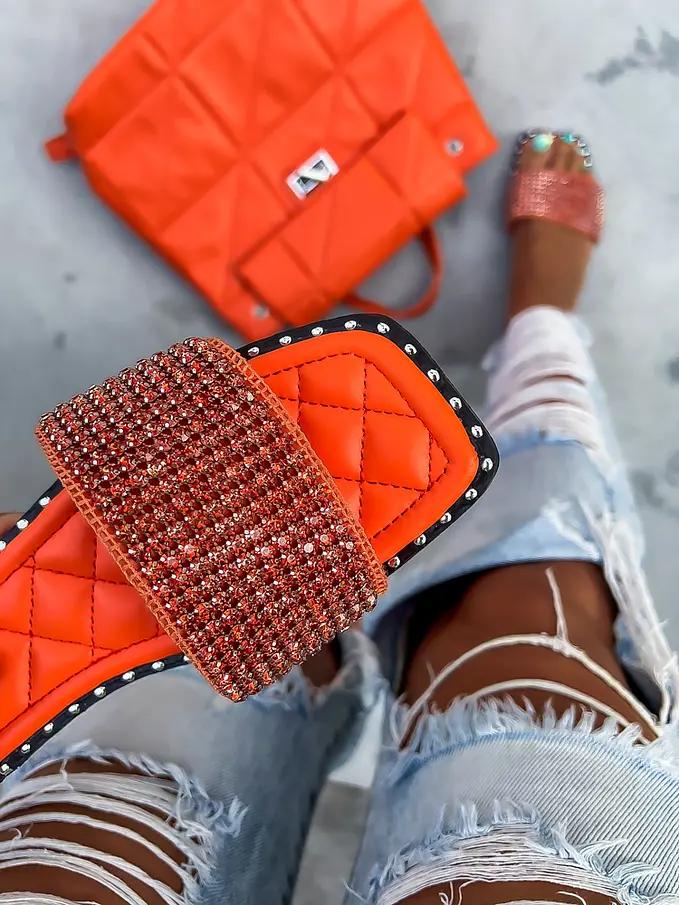 Dámske šľapky zdobené kamienkami.