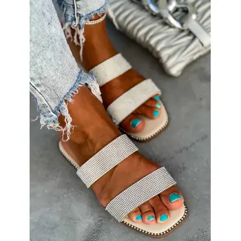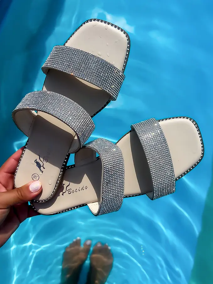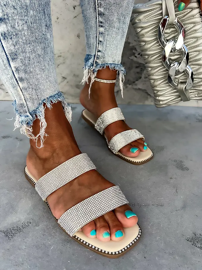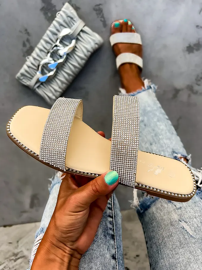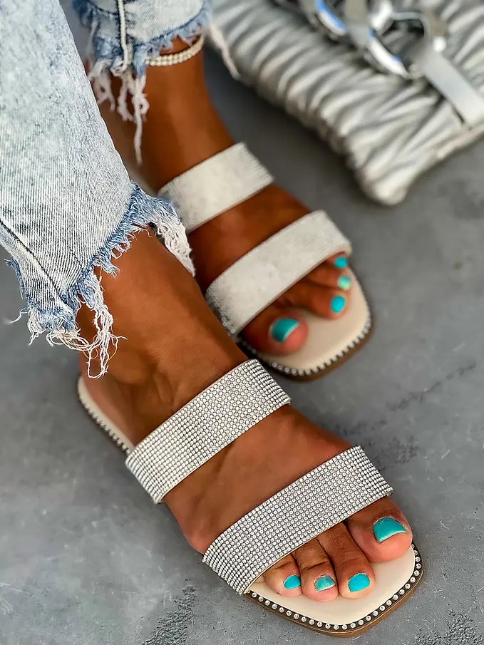 Dámske šľapky zdobené kamienkami.