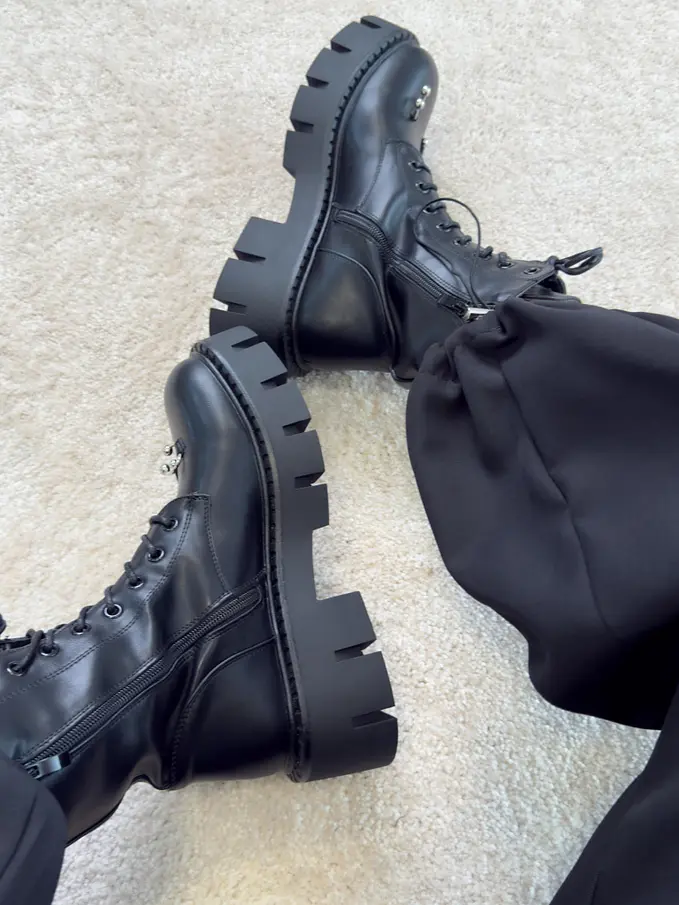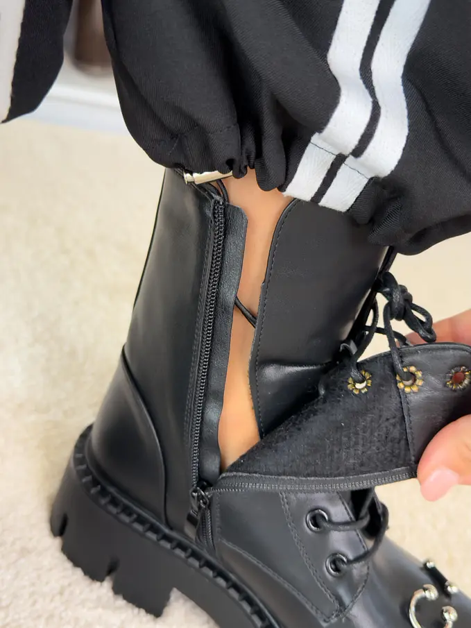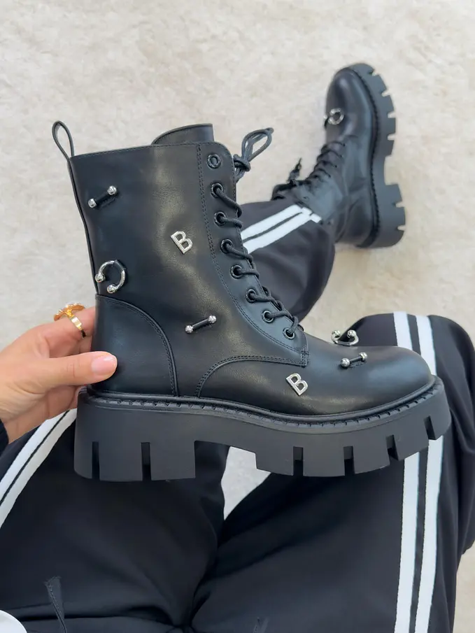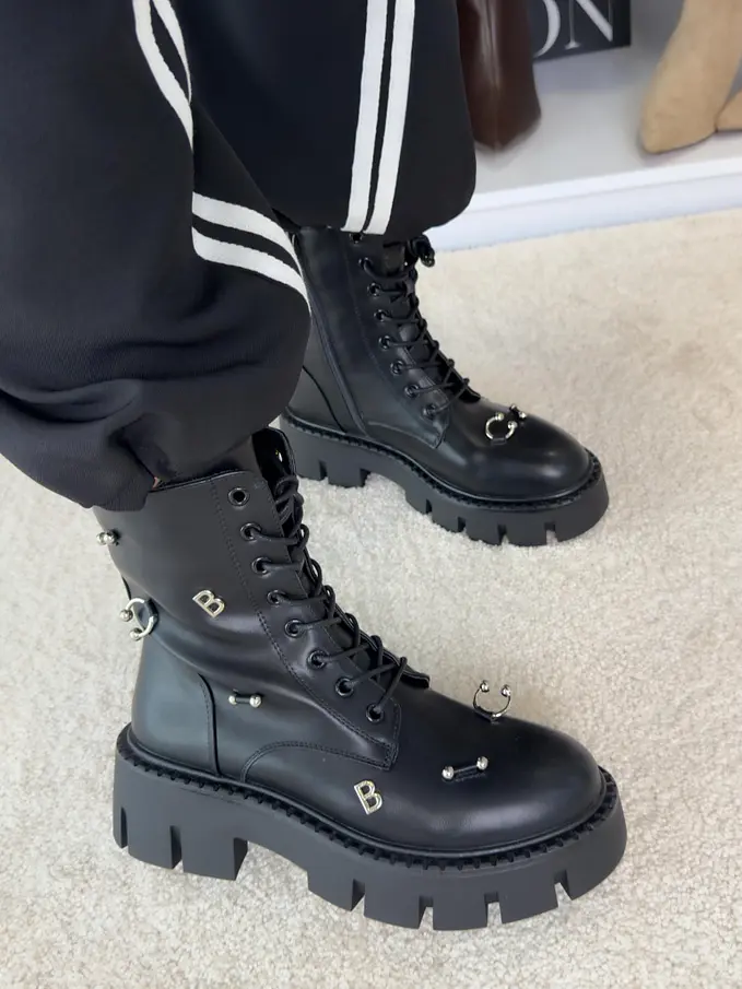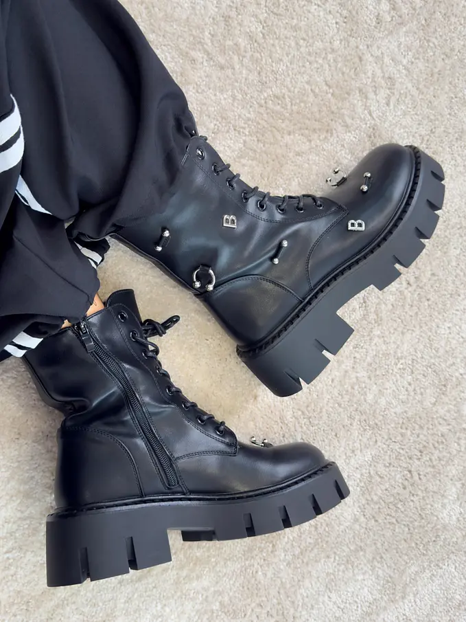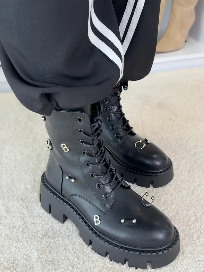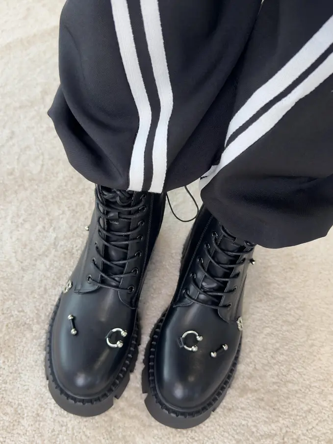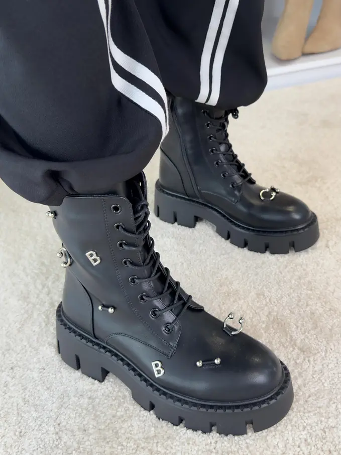 Šnúrovacie čižmy so striebornými ozdobami AYAH-