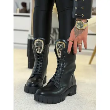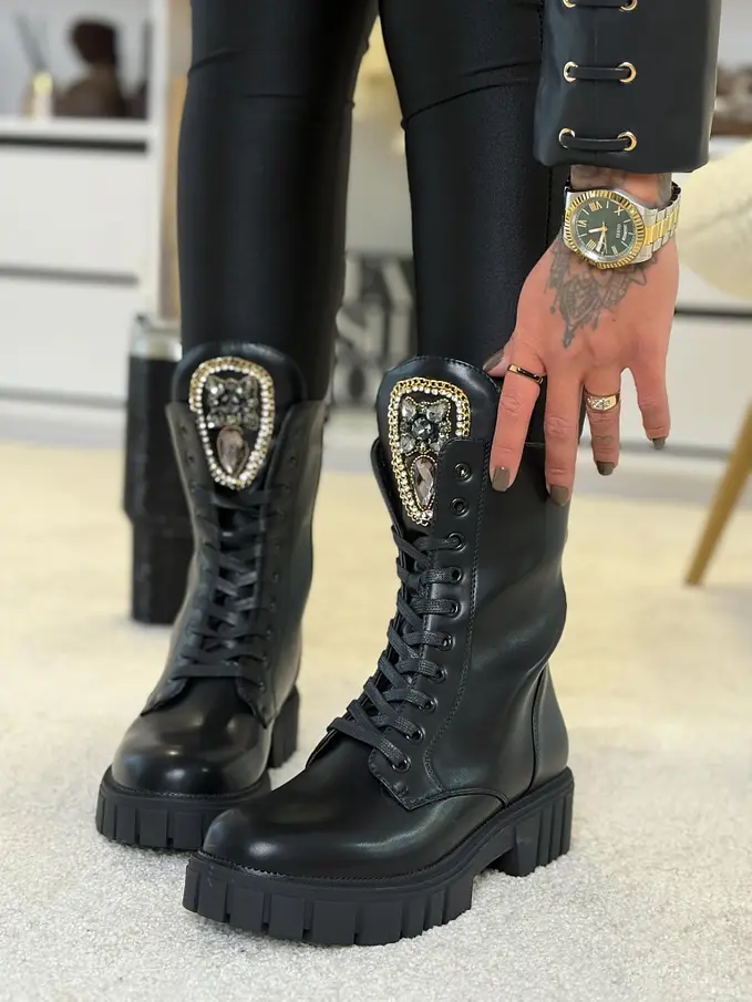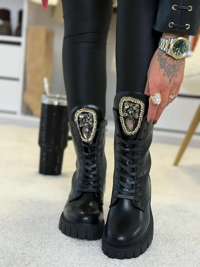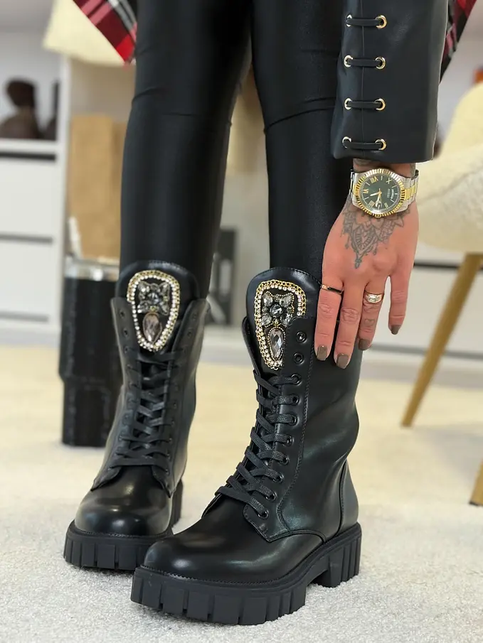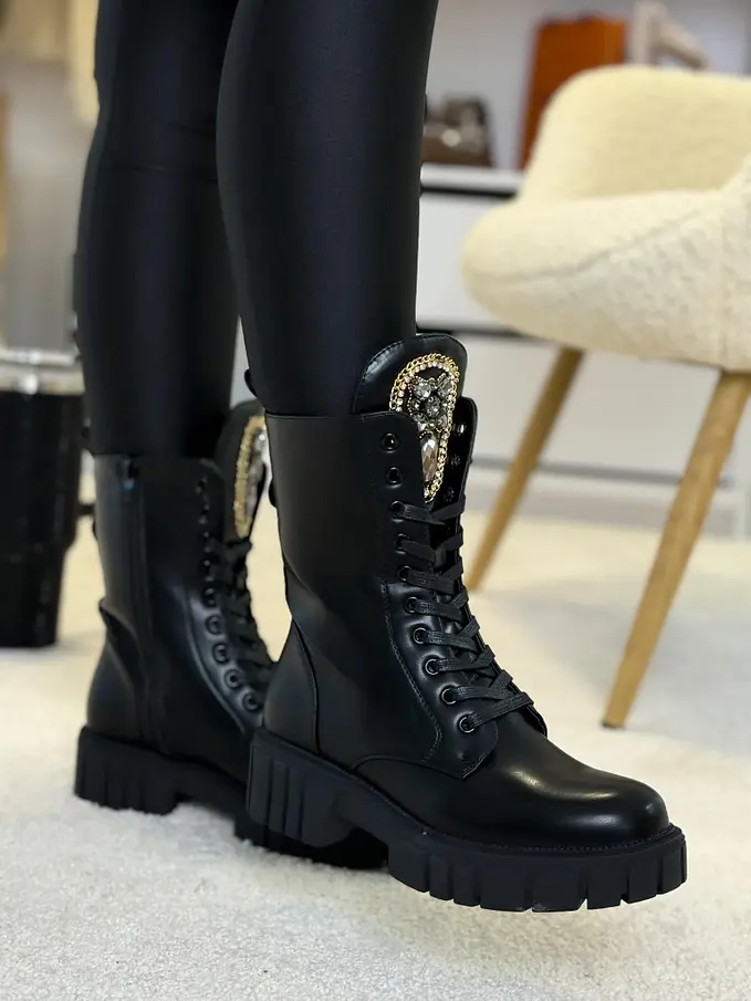Šnúrovacie čižmy so zlatou ozdobou LOREN