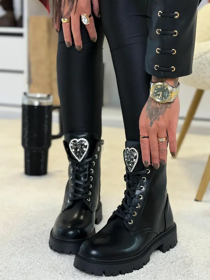 Šnúrovacie čižmy zdobené kamienkami HAIFA+