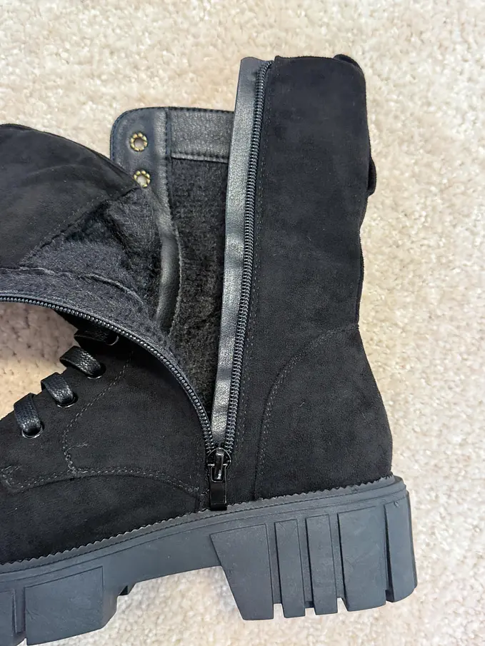 Čižmy sú mierne zateplené. Ozdoba má zlatú a čiernu farbu. Na boku so zipsom.