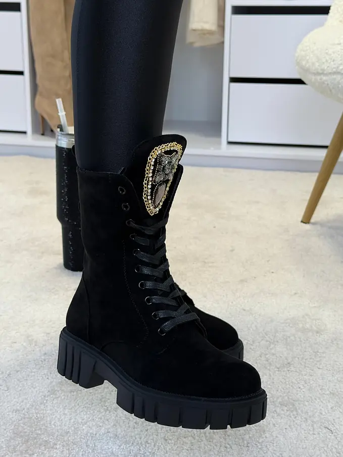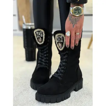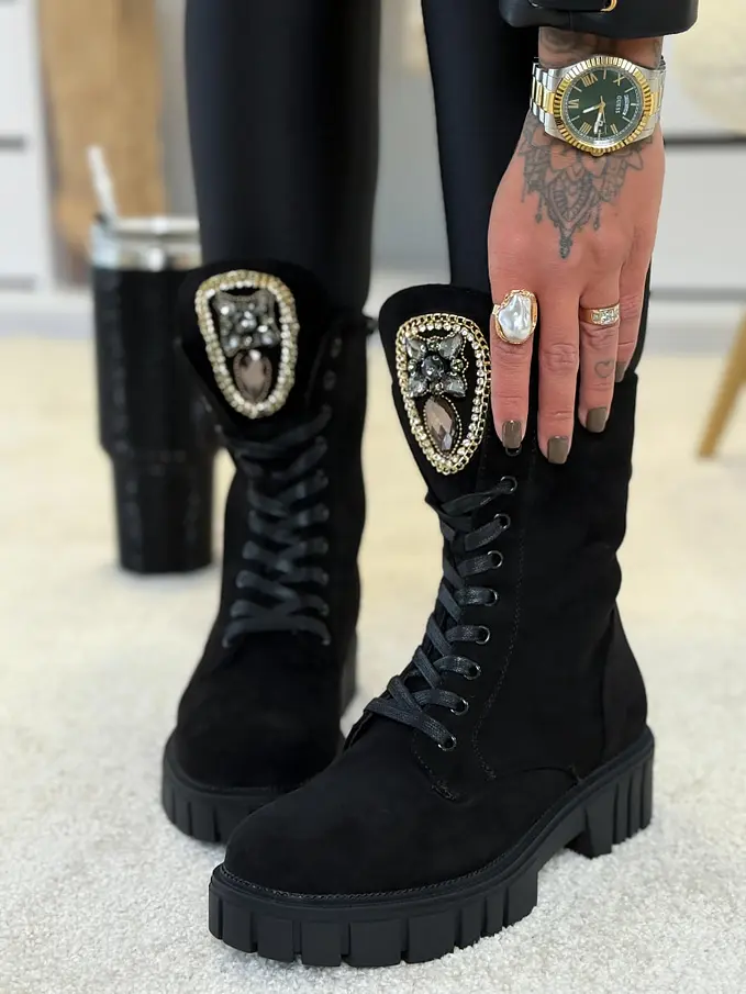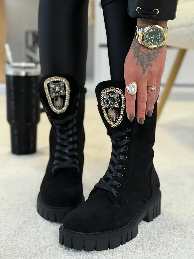 Šnúrovacie čižmy zdobené kamienkami MISENA