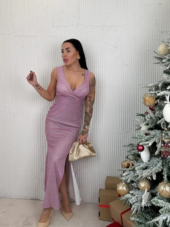 Spoločenské šaty. S vypchávkami v oblasti hrudníka. Na zadnej strane je zips.