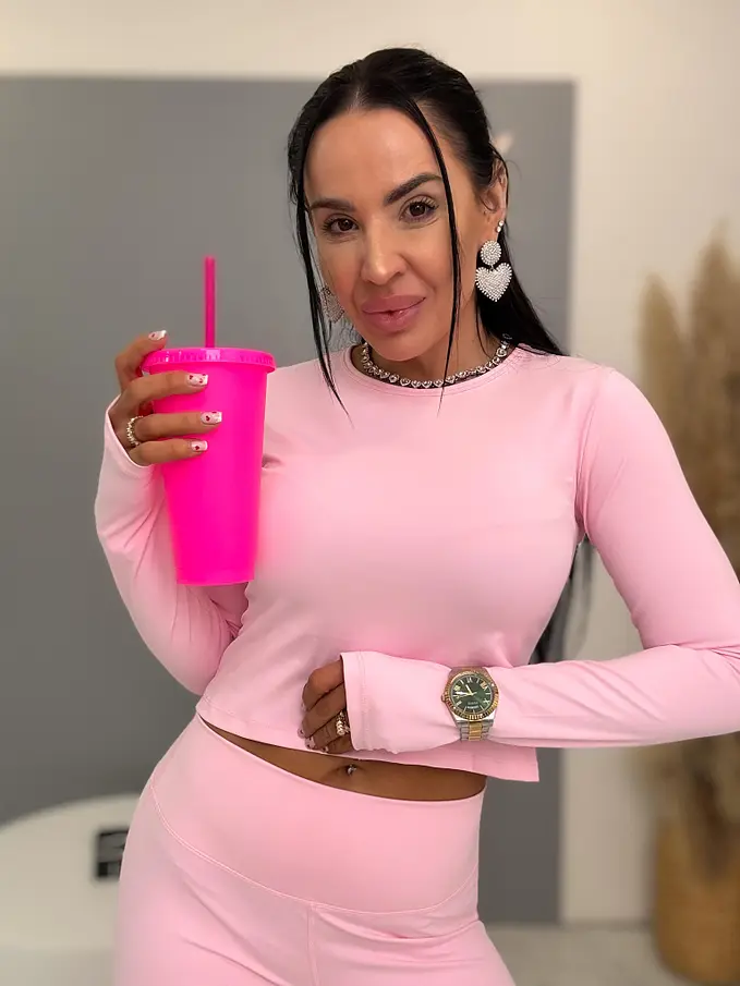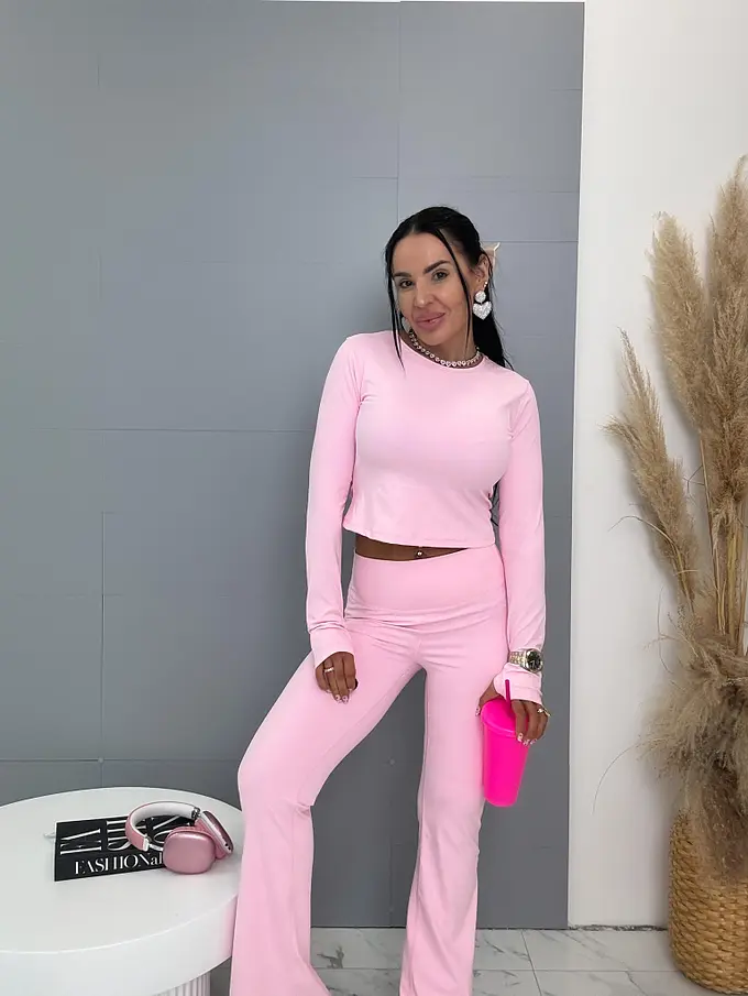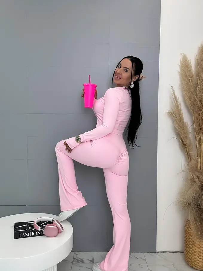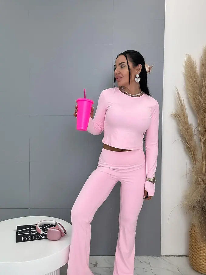 Módny komplet pre extravagantné ženy. Priamo z Francúzka. Set pozostáva z trička s dlhým rukávom a legíny s tvarovaným zadkom. Materiál je elastický. Nohavice majú gumený pás.