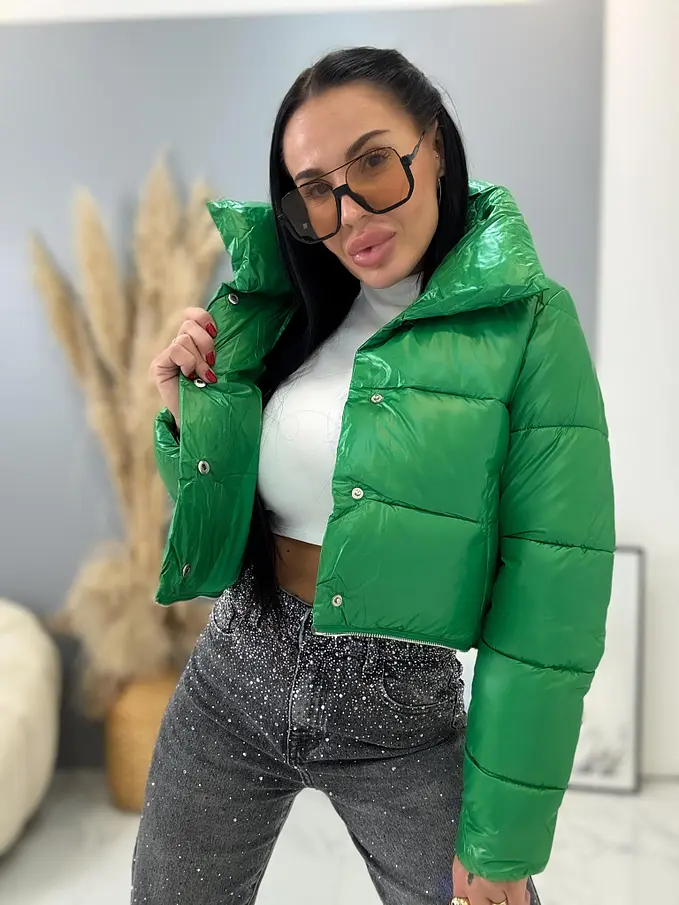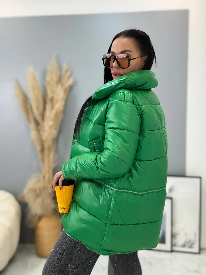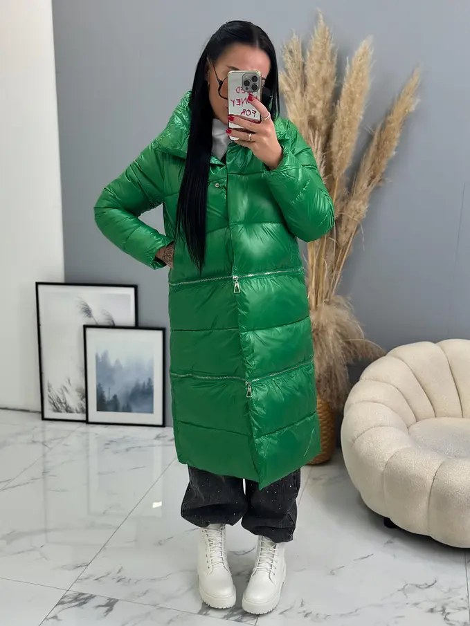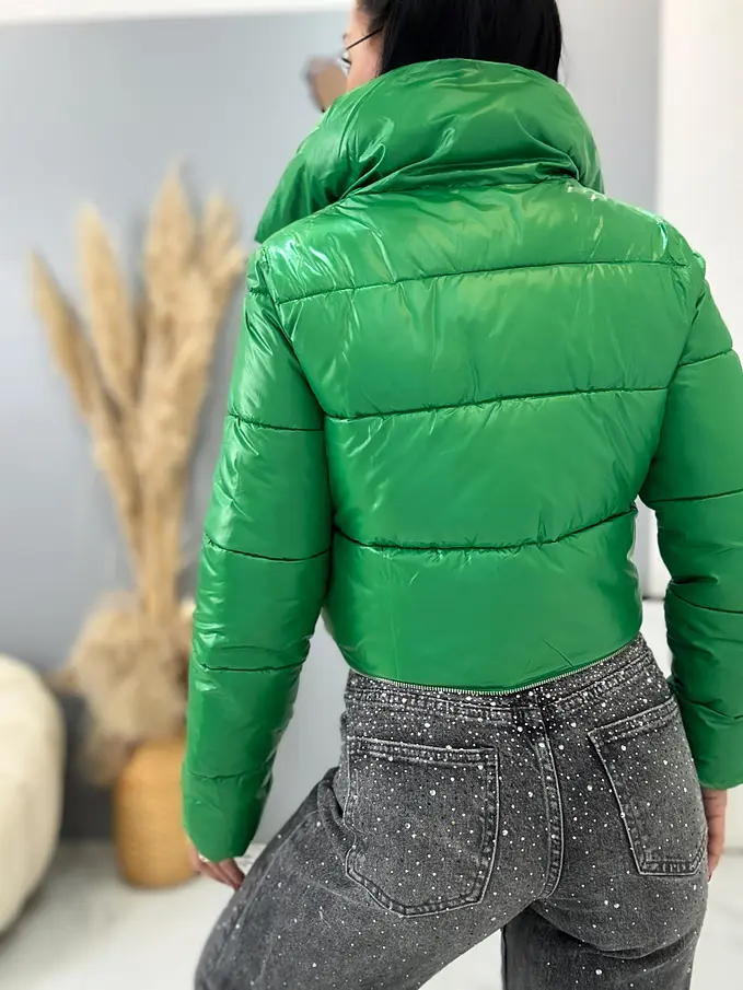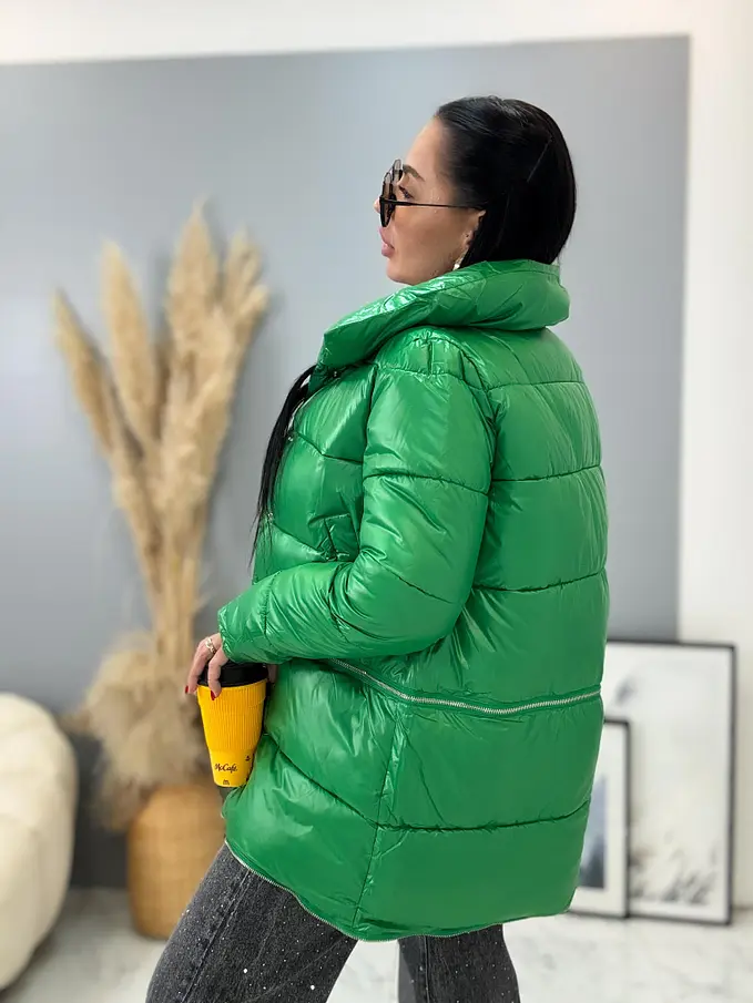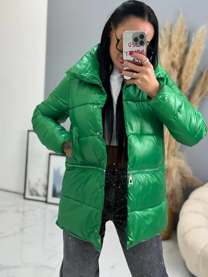 Skvelá prešívaná teplá bunda s reguláciou dĺžku. S bočnými vreckami. Zips v striebornej farbe.