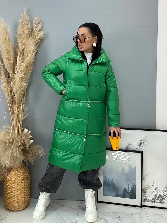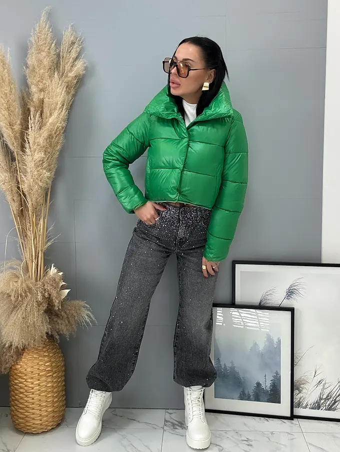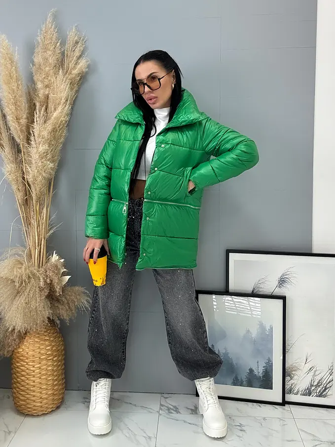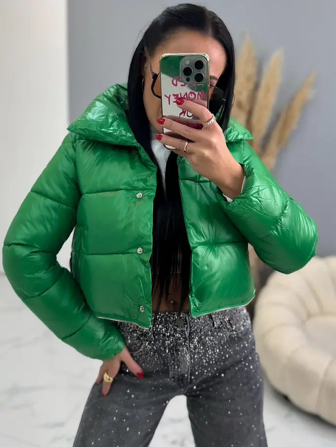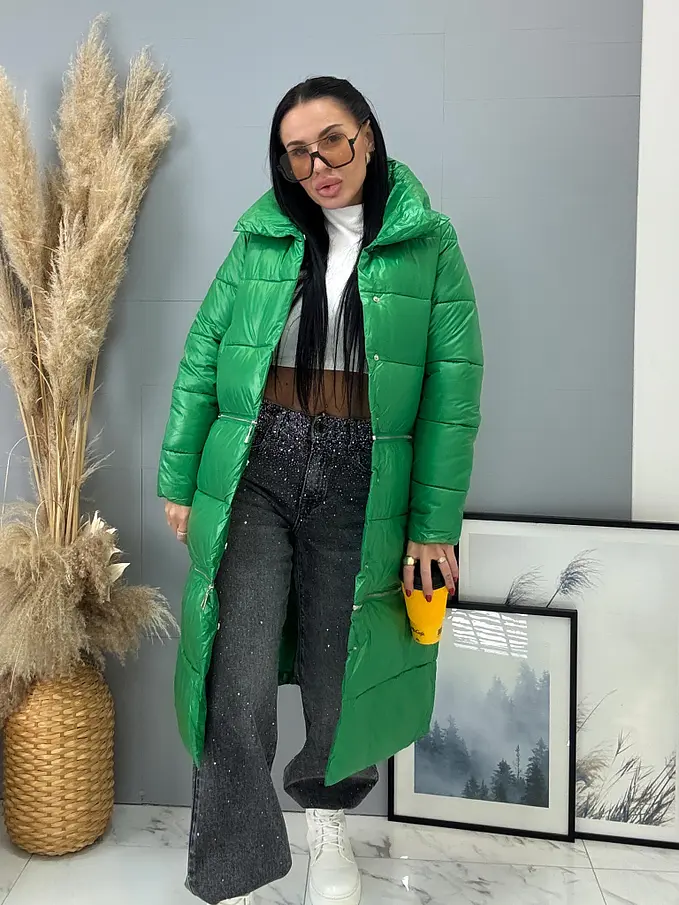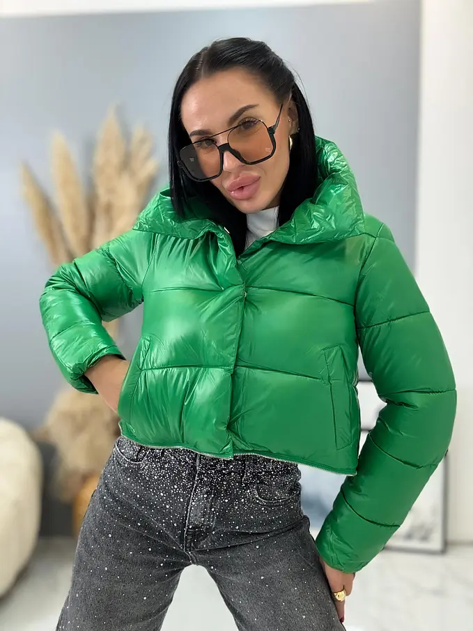 Skvelá prešívaná teplá bunda s reguláciou dĺžku. S bočnými vreckami. Zips v striebornej farbe.