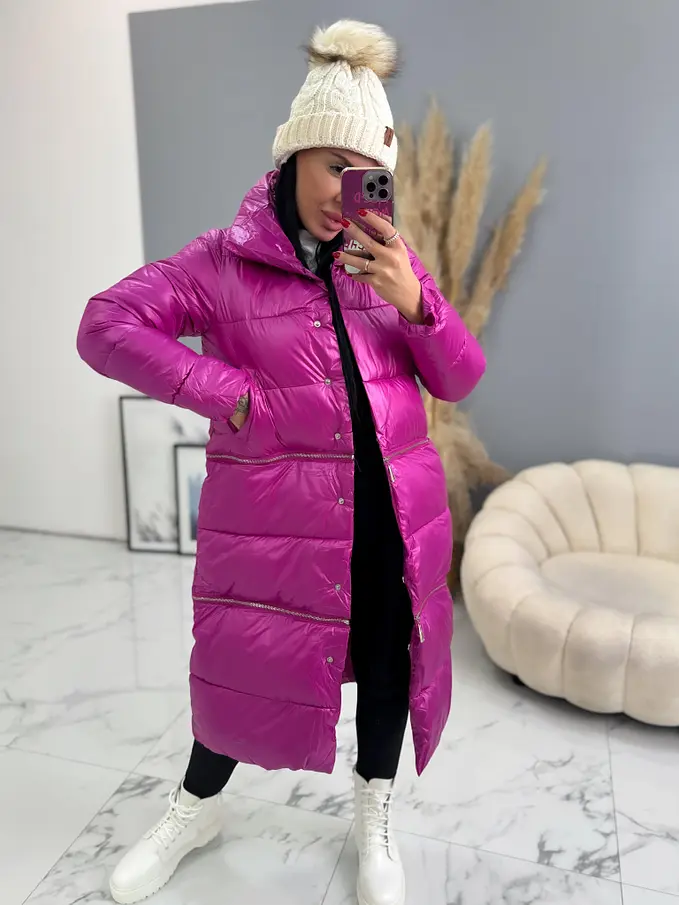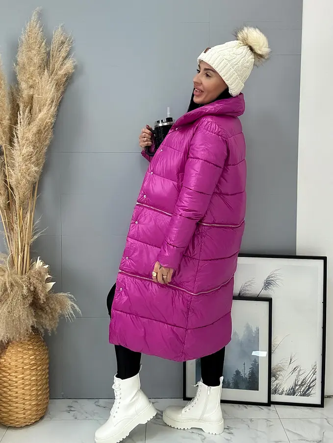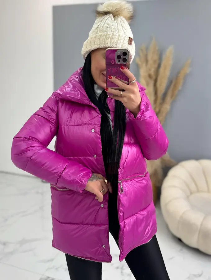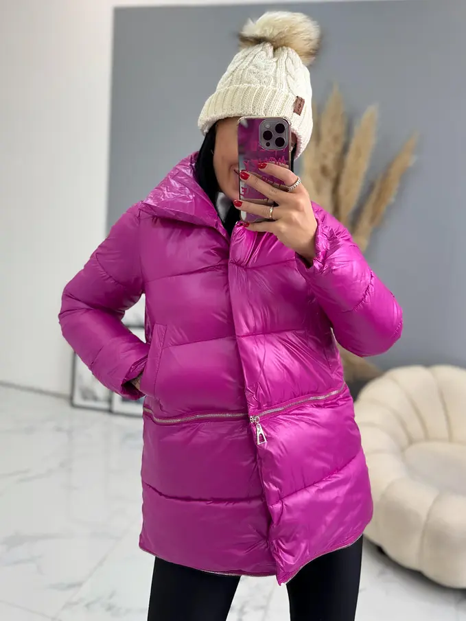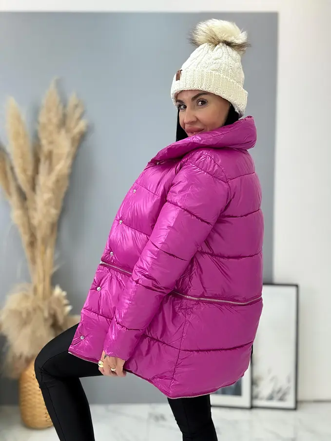 Skvelá prešívaná teplá bunda s reguláciou dĺžku. S bočnými vreckami. Zips v striebornej farbe.