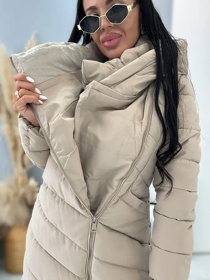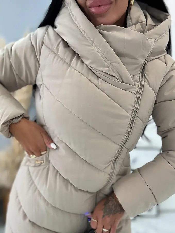 Štepovaná bunda s kapucňou a opaskom MARSELA