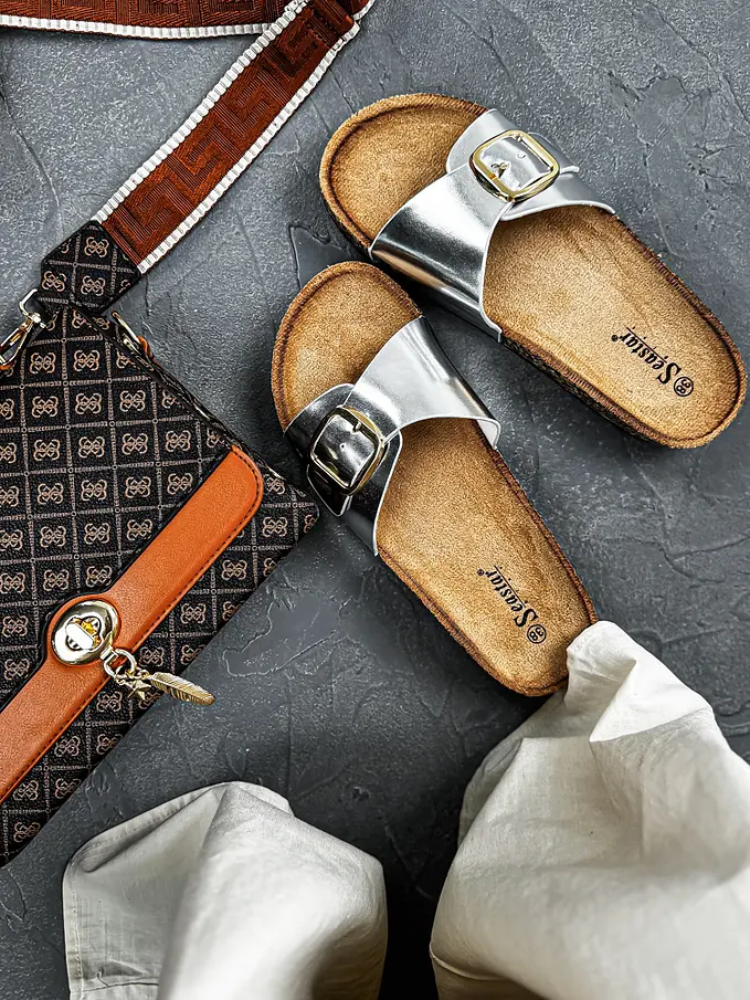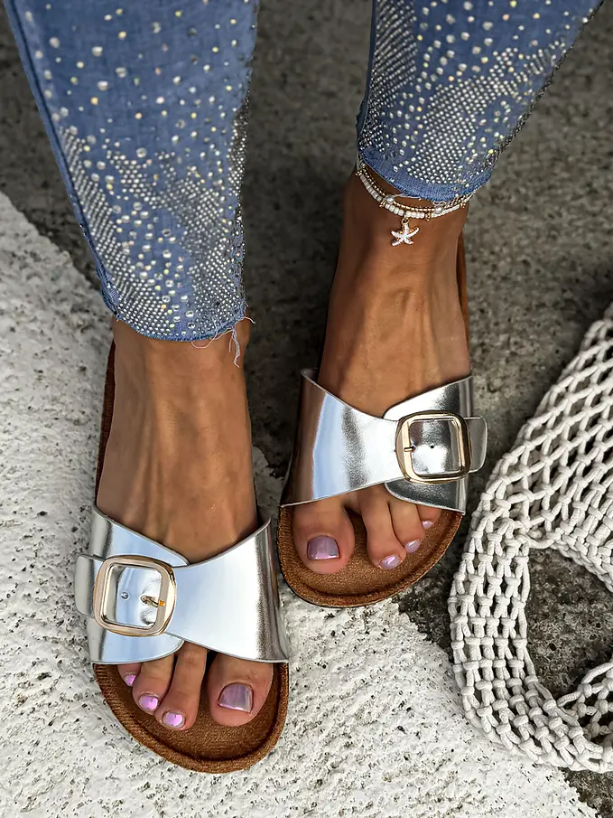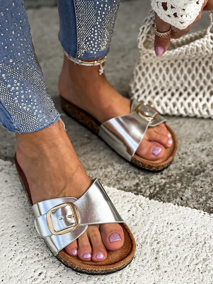 Strieborné dámske šľapky ROBERTA-
