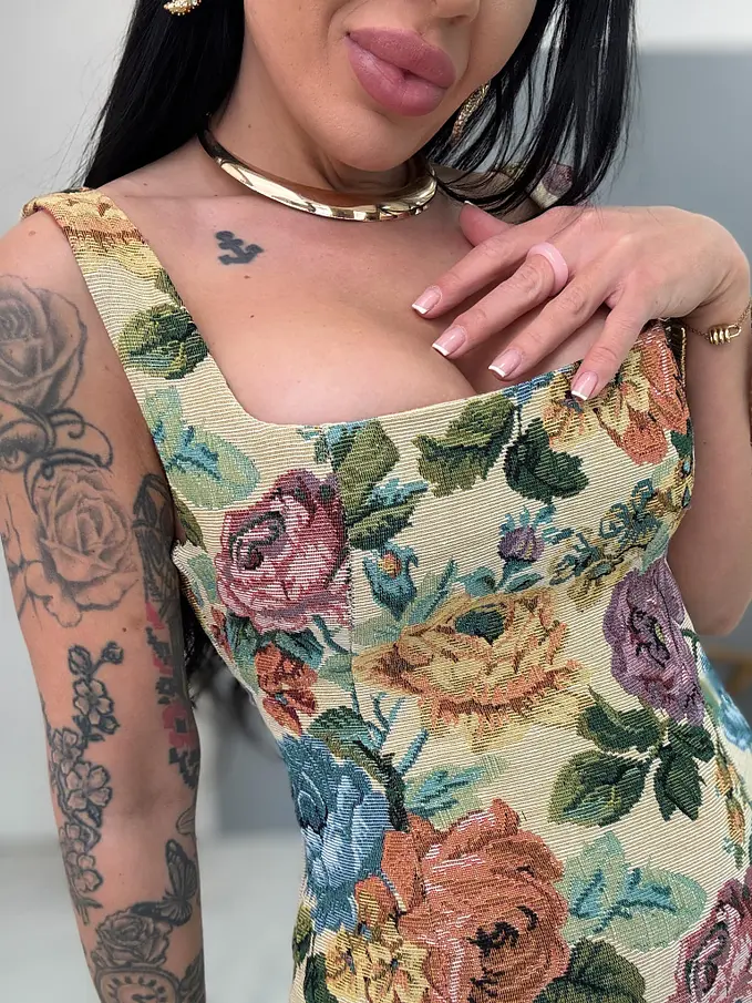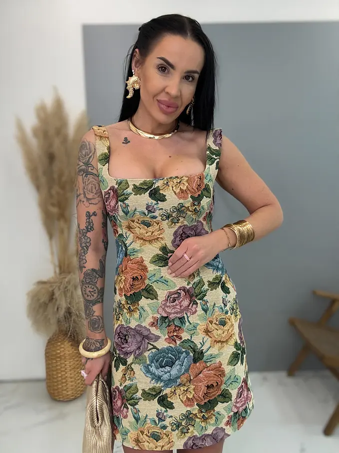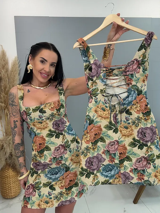 Štrukturované kvetované šaty so šnurovaním vzadu ROSE