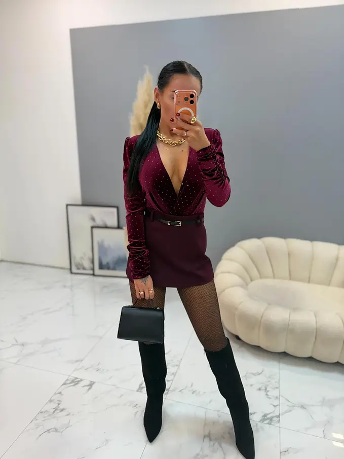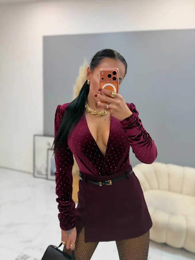 Modelka čiernovláska meria 164 cm a váži 57 kg.