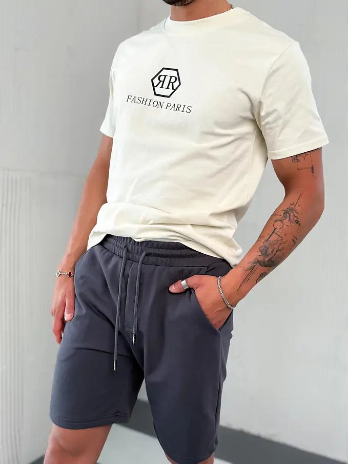 Štýlové bermudy z elastickej teplákoviny. Model mal na sebe veľkosť M.