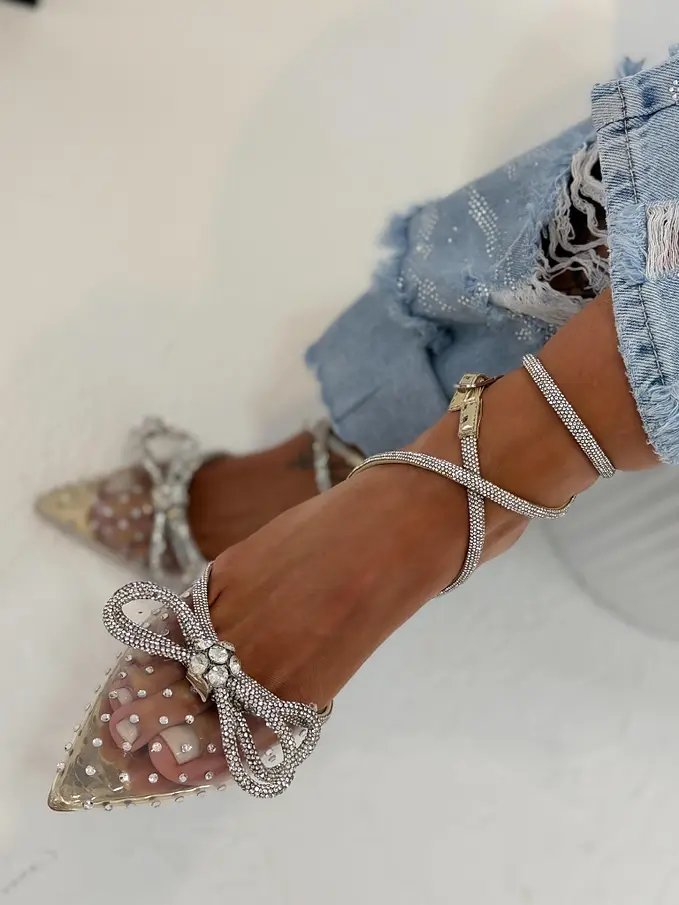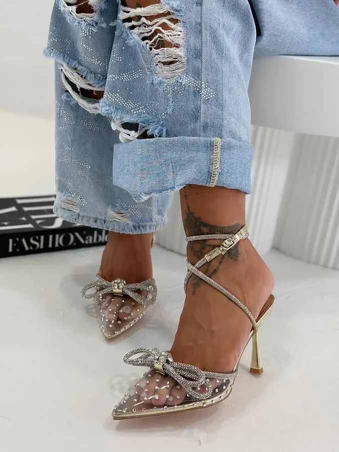 Transparentné sandále s kamienkami a mašľou GITTA-