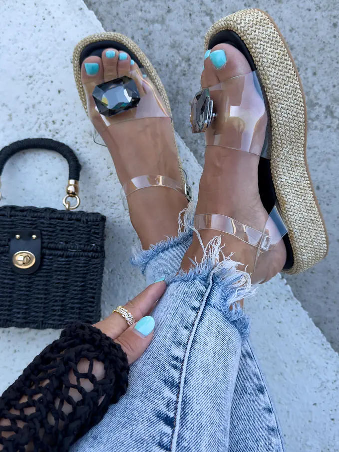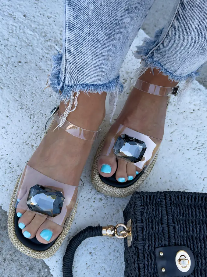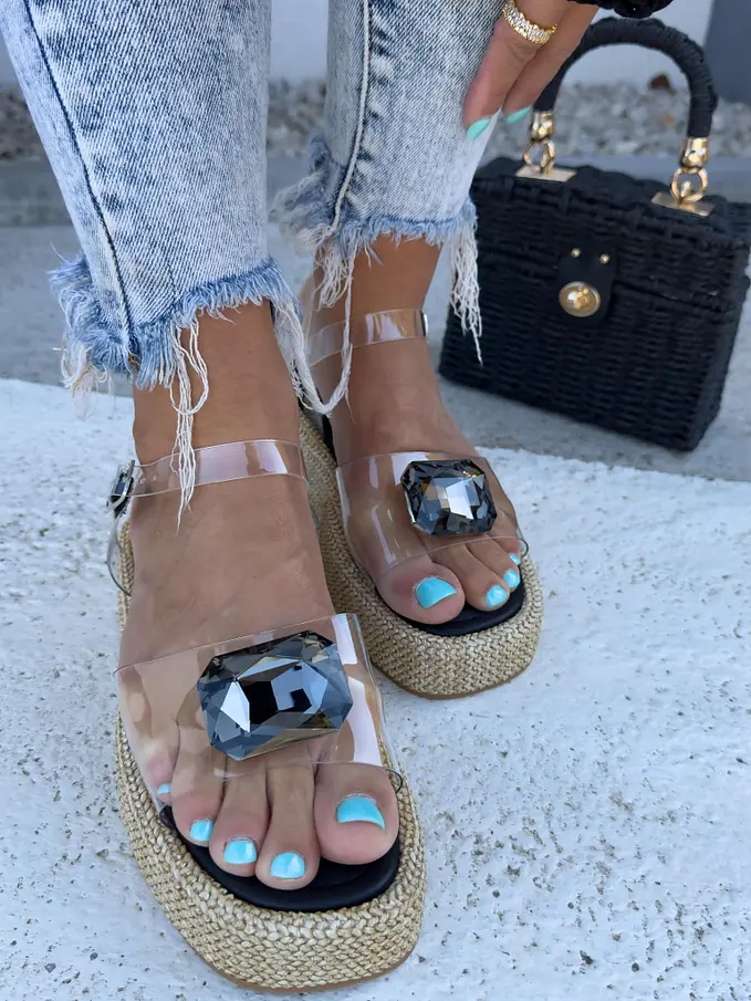 Transparentné sandále zdobené kamienkom CLINDA-