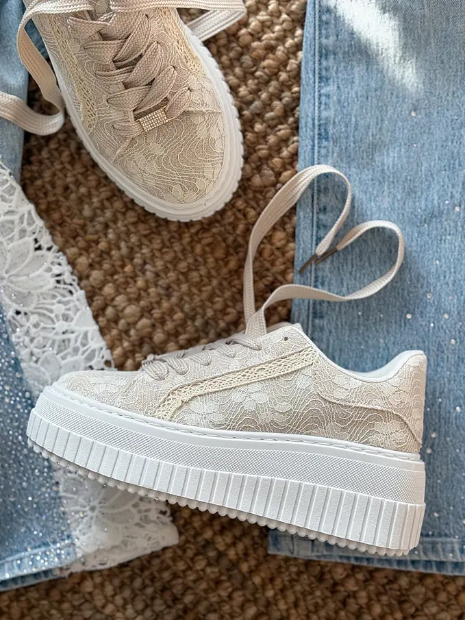 Trblietavé tenisky zdobené čipkou ANIRMA