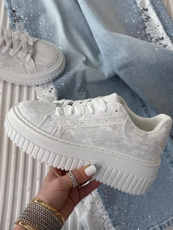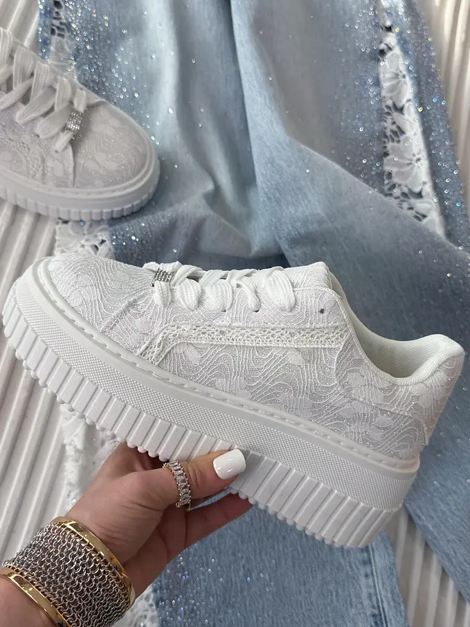 Trblietavé tenisky zdobené čipkou ANIRMA