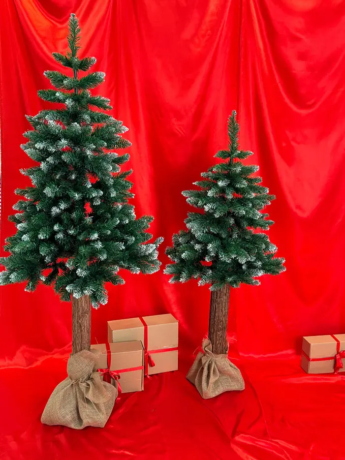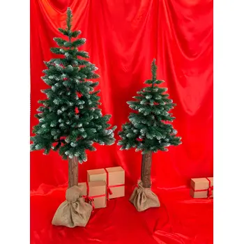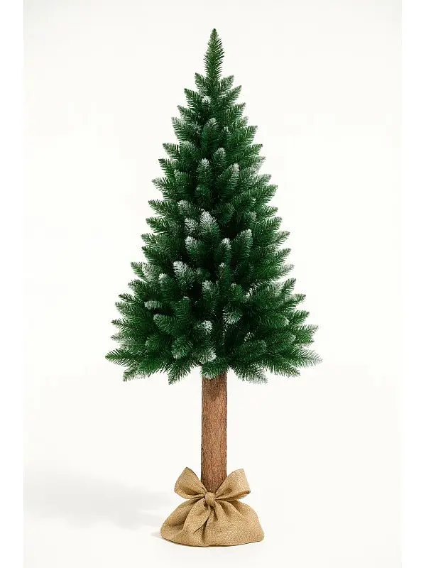 Tento vianočný stromček je vyrobený z najkvalitnejšieho PVC, s hustými, jemne zasneženými vetvami na pevnom a hrubom drôte. Prírodne vyzerajúci smrekový kmeň je zakončený kovovým stojanom a dekoratívnou jutou.