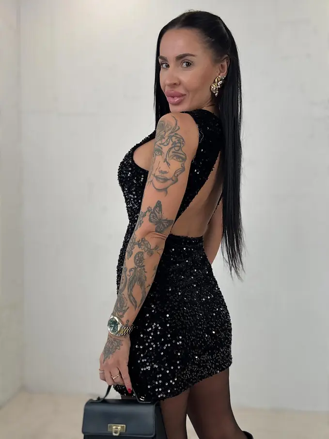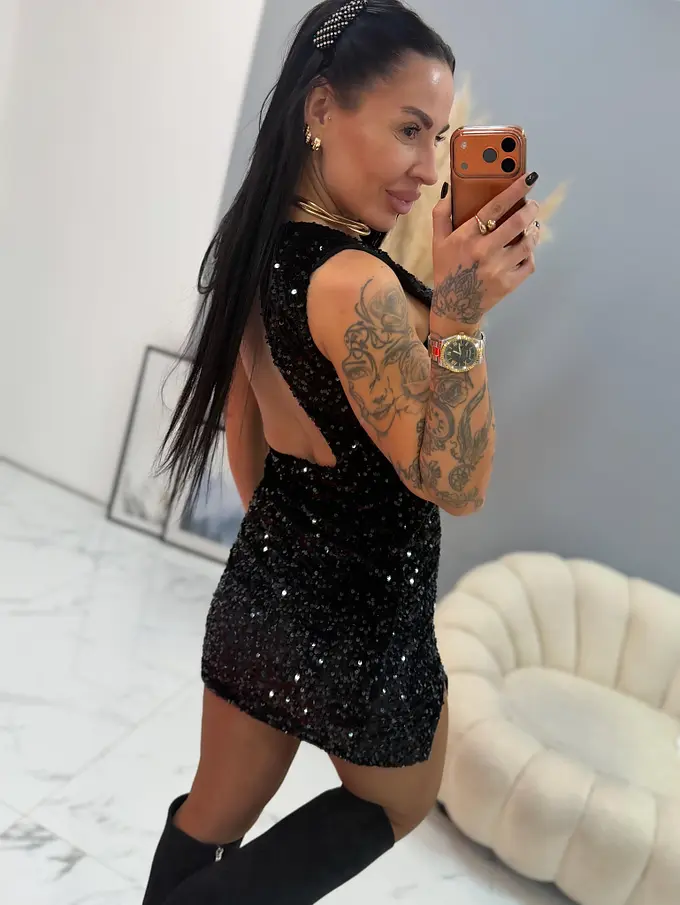 Modelka čiernovláska meria 164 cm a váži 57 kg.